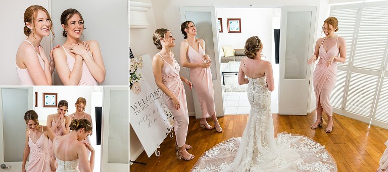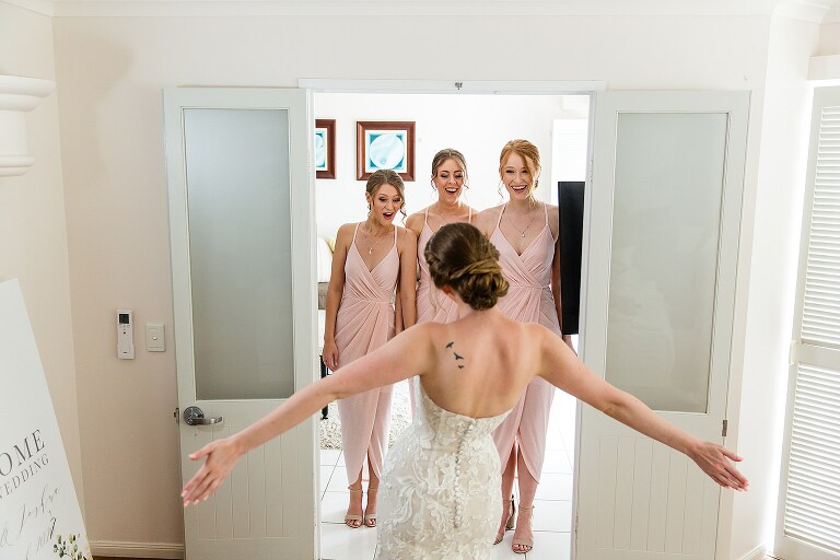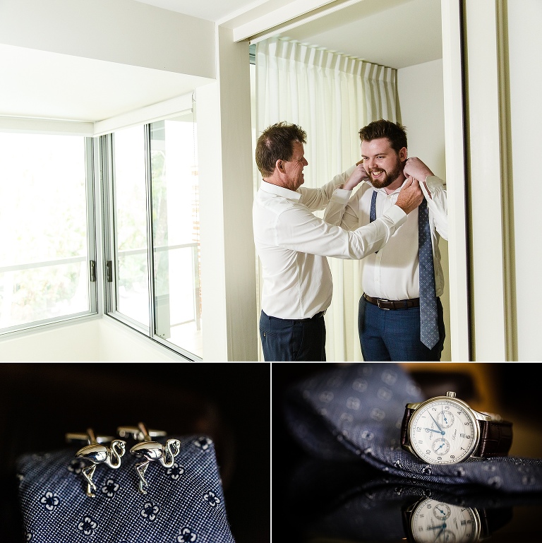 The day started out relaxed…. although the groomsmen would say otherwise!! “The suspenders broke, the boutonniere pins broke, the pocket squares were falling out of the jackets, and Josh realised the Marvel character socks he had bought were actually for children…. It’s a wonder how it all pulled together. There were a few bobby pins and brand new Kmart belts involved!” But the boys were full of laughter despite any mishaps. At opening their customized glasses they pretended the best part was the bubble wrap!