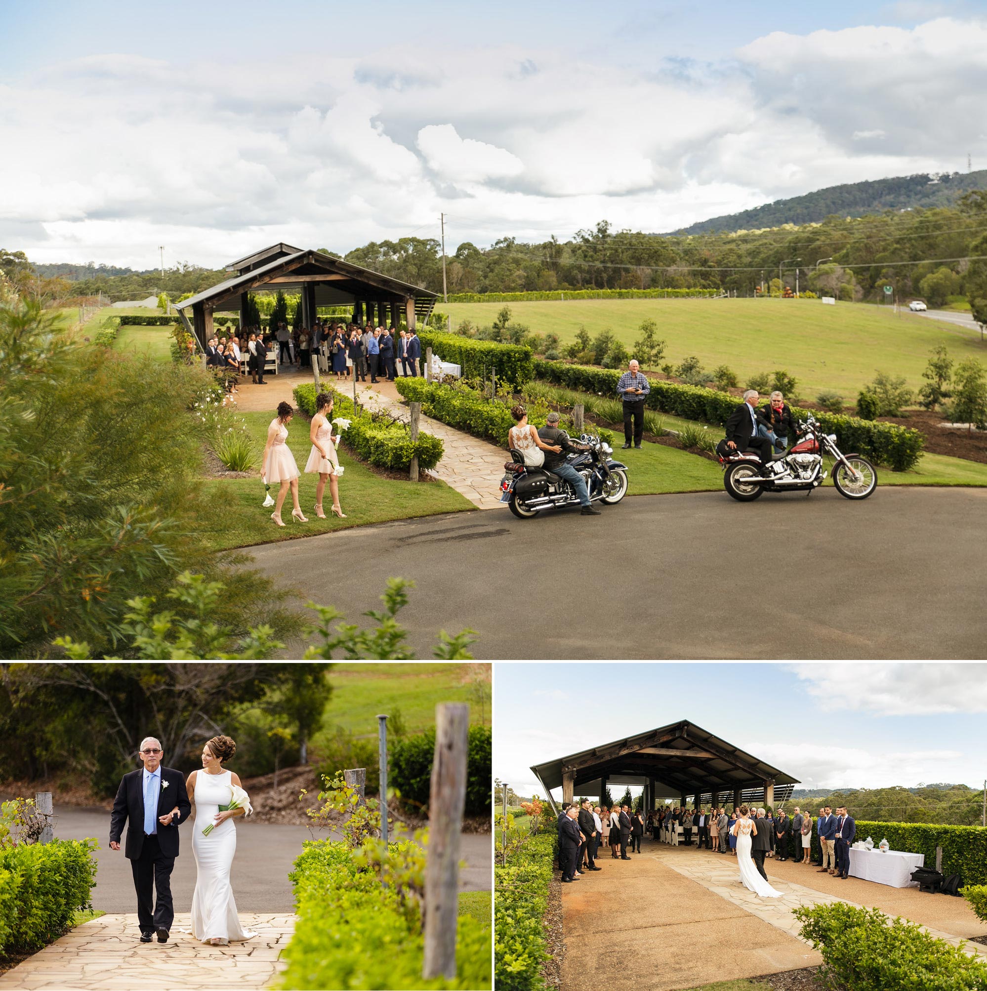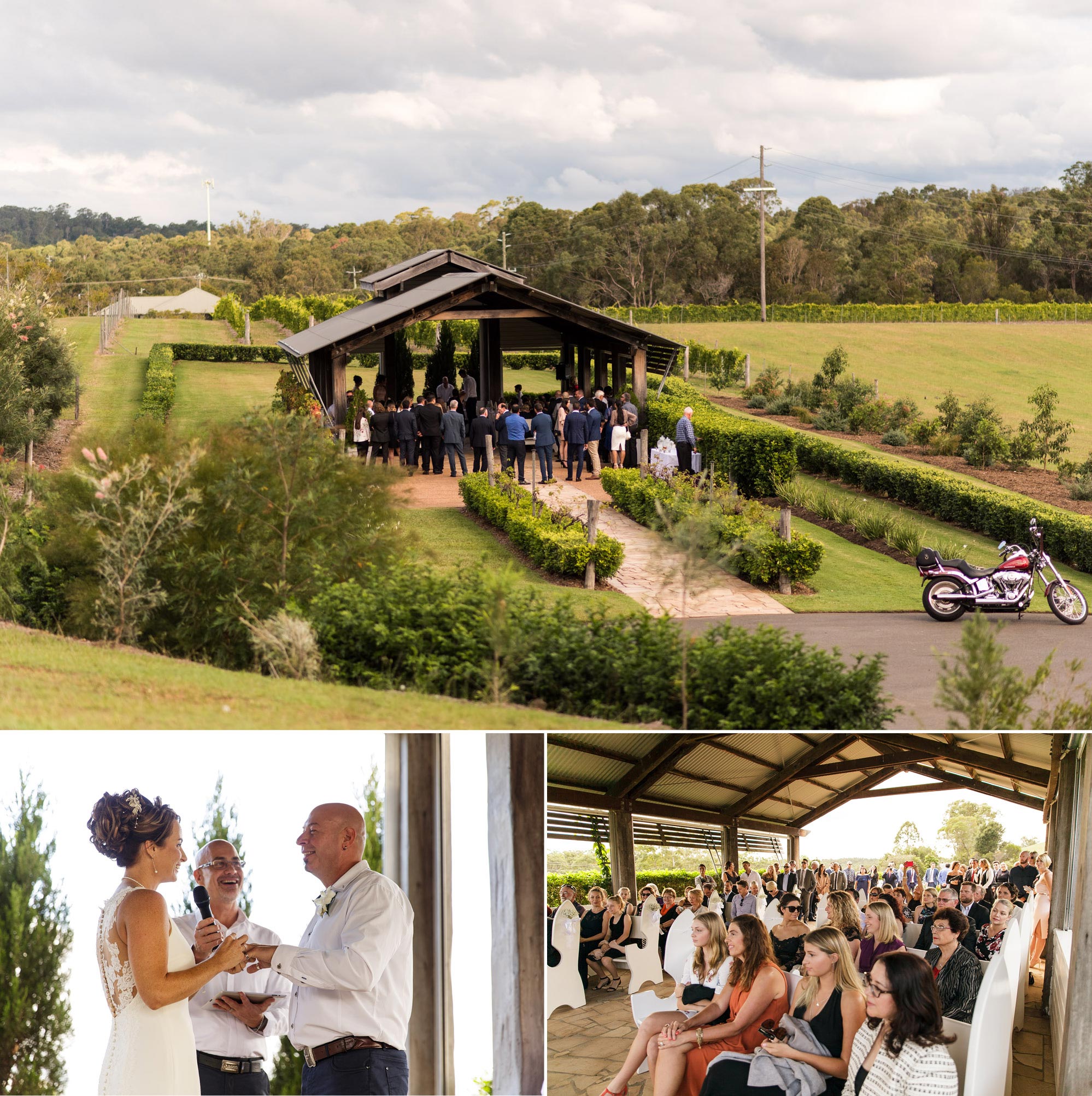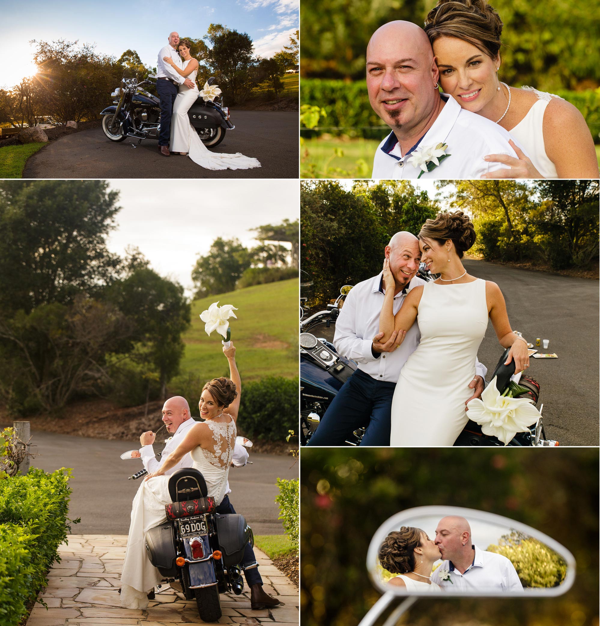 Allana + Robbie were married at Sirromet Winery’s Arbour in May. Allana made her entrance on a Harley to Robbie’s surprise! We loved everything about their day…but especially the CHEESE CAKE. No, really…. it was a C-H-E-E-S-E cake and it smelled amazing all night. LOL. To see all of Allana + Robbie’s wedding day photos visit their gallery by CLICKING HERE.