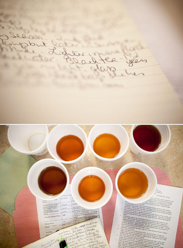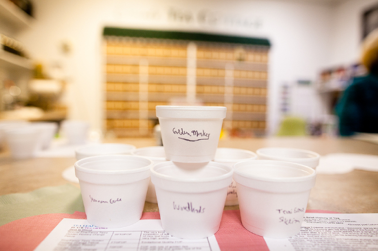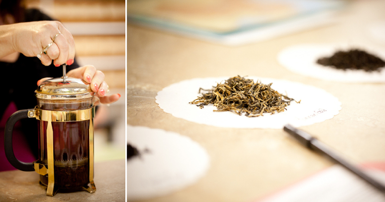 You can also differentiate teas by their color. Remember, all of these are black teas! Teas grown in higher altitudes are lighter and more floral in flavor. A desired quality is also the astringency, or dryness that coates your mouth. My favorite was Golden Monkey! It was very smooth, not much astringency (I don’t prefer this quality) and had a hint of caramel. Of course this was the most expensive out of all we tasted!