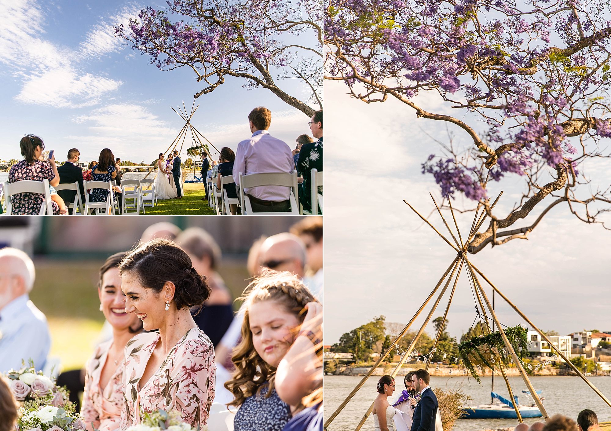 Planes were circling in love hearts above Anna + Trevor’s ceremony…not something you see often…special thanks to Brisbane’s Riverfire. It was a gorgeously warm day with Jacaranda trees in bloom! To add to the festivities sparklers were lit for their entrance at Riverside Receptions! To see their entire wedding visit their gallery by CLICKING HERE.