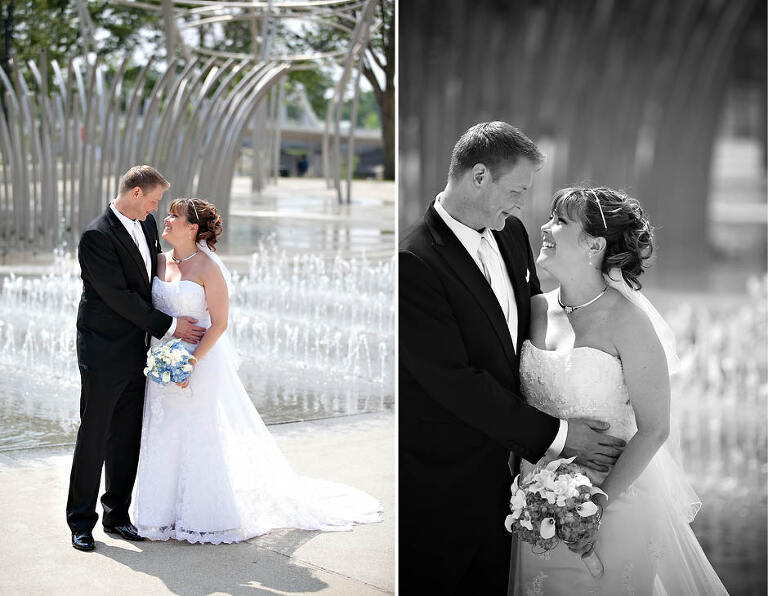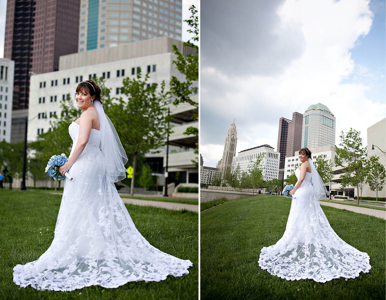 Yesterday was Barant + Amber’s wedding in downtown Columbus, Ohio and their blog post is already UP! I loved Amber’s blue accents and the girl’s dresses and shoes!! Not to mention Amber’s dress. Wow!!! It was fitted, yet had a long lacy train without the weight…. lovely for photos! I first met these two at Barant’s sister’s wedding and snapped a few quick shots of them even before they were engaged!! They were adorable!! Both families are so sweet and easy going.