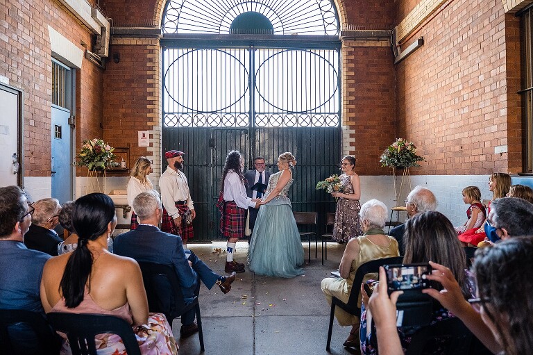 Anna “uncharacteristically” arrived early to the ceremony and ironically had to hide out in the police station across the street from the gaol. (that might have been my fault!! Lol I said don’t be late… so many awesome photos to take!!!) It was my wish that time would stand still for them both during the ceremony and Anna indeed said she was “blown away by how magical the ceremony was…[and] feeling completely enveloped by love and support by our wonderful families and friends.” Boggo Road Gaol bound Anna and Angus for a life sentence as ‘in-mates.’ Two people couldn’t be more guilty of love. Lol. Couldn’t resist.