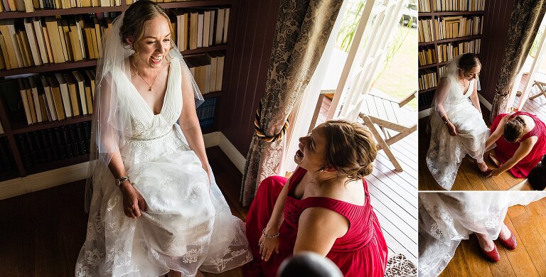 Finding out the groom was wearing pineapple themed socks as we had only joked about it & forgetting to unbussel my dress prior to putting it on led to 30 mins of pure laughter and shenanigans.