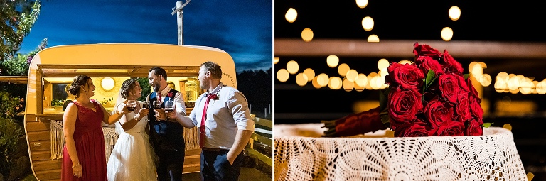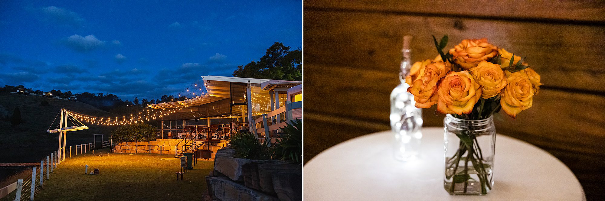 The lighting around the venue, the groom spent hours the day before stringing up additional lights to complement what was already in place and it looked magical on the night. The roses were great as the main decorations and everyone got to take some home for mothers day the next day. The food was amazing and the sunset at the venue just rounded out the day so well.