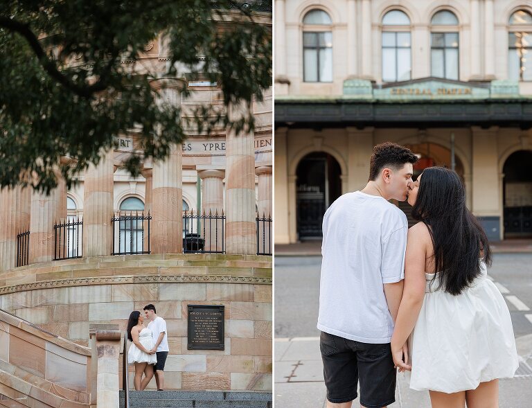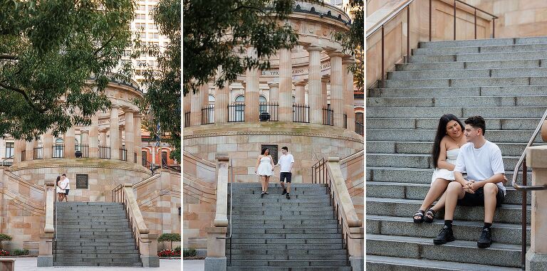 An engagement session in Brisbane City’s Anzac Square in the early hours offer soft, natural light, which highlights the square’s historical monuments and surrounding greenery. The space is typically less crowded at this time, allowing for uninterrupted shots against the backdrop of Brisbane’s cityscape. The square’s architectural features and well-maintained grounds make it an ideal location for capturing images with a classic feel. I’ve been wanting to do a shoot here for quite awhile and was happy they opted for this spot. I worked downtown for the last two years and this was a daily part of my walking route…Anzac Square.