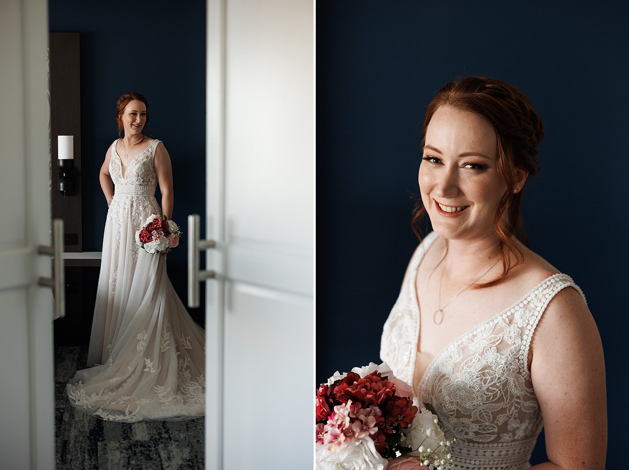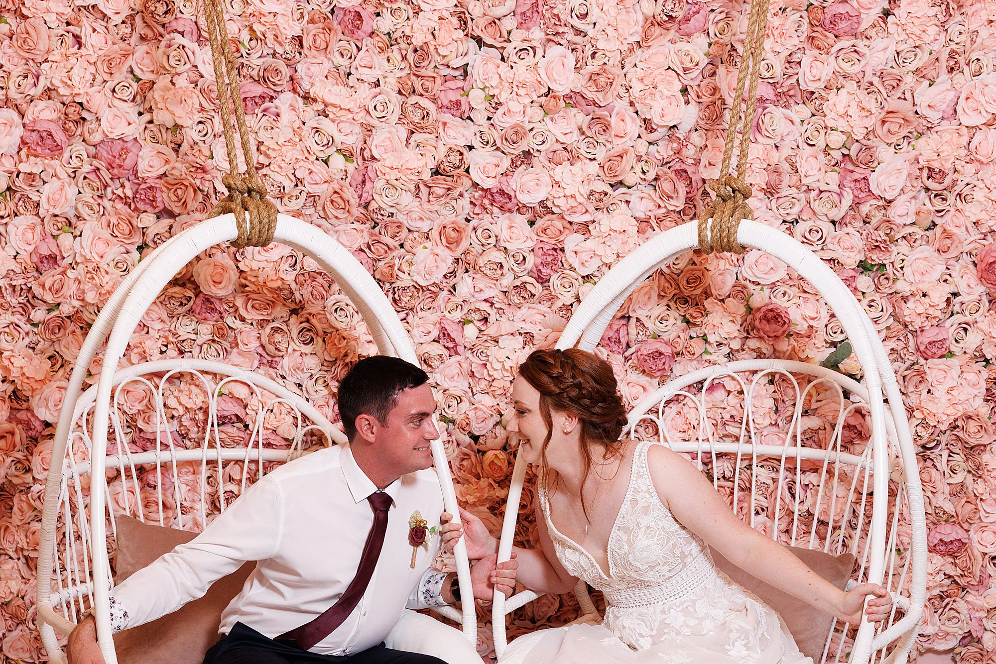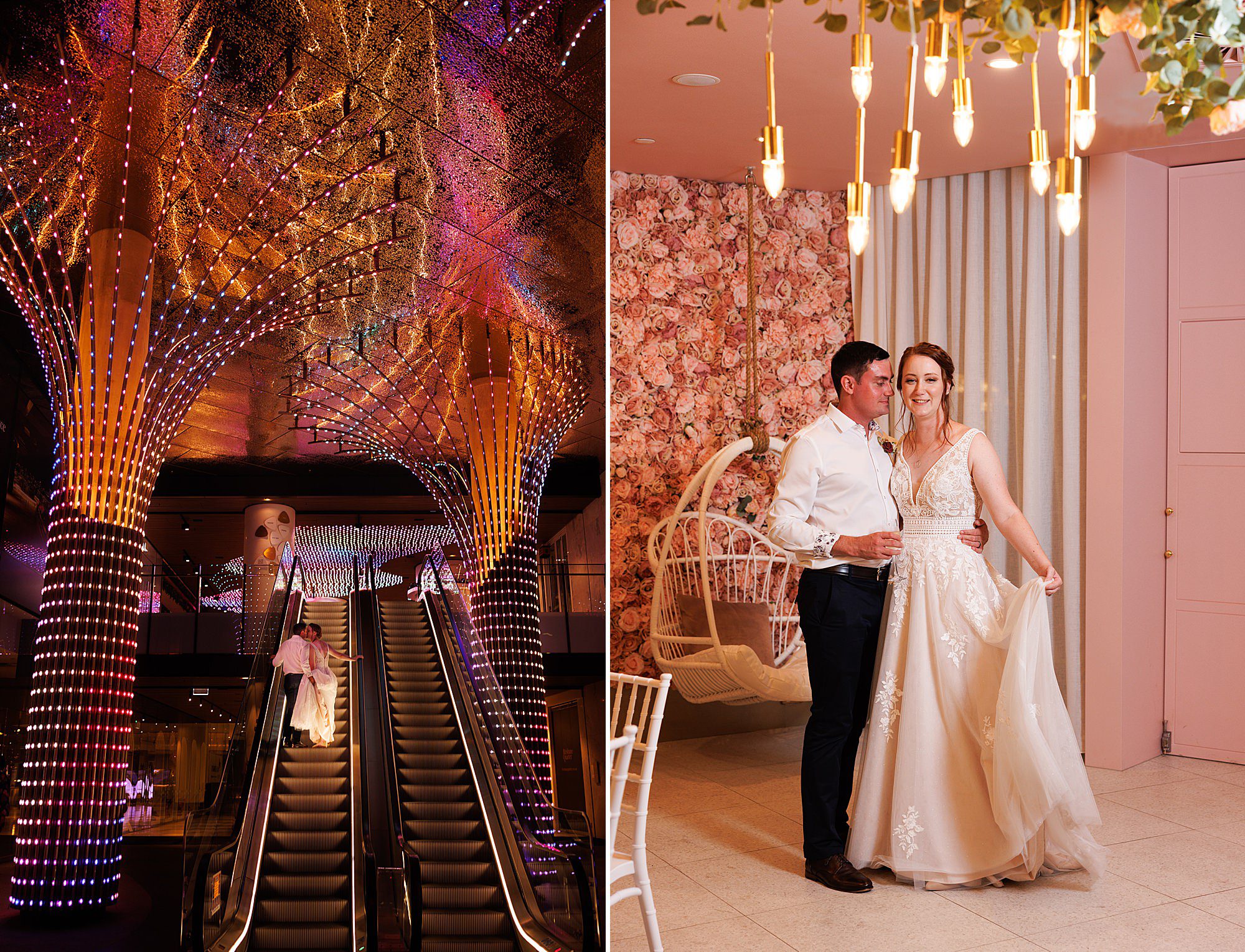 We absolutely love the views from the Brisbane Registry ceremonies! You forget we are so close to the range until you are at a Birds Eye view over the city. Classic touches of decor set in place with muted toned flowers … these went perfectly with the maroon/pink they’d picked. A brand new venue for the city and us was the choice of Perhaps for their reception. Impeccable design and spot on rose wall with hanging swings for guest fun. The canapé catering was insta worthy and even more delicious. High tea treats and beverages on arrival with heavy canapés to follow and a more hearty second course and then desserts. So much yummy variety. …and sooooo many happy snaps on the rose wall!