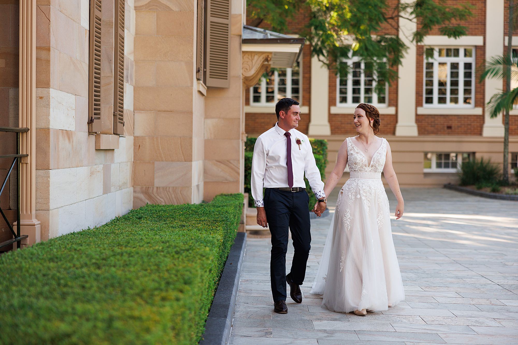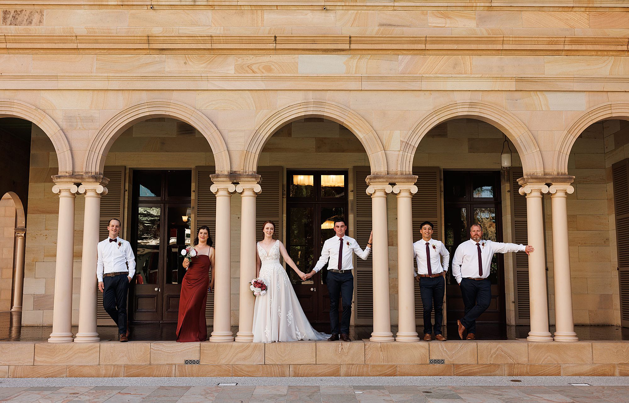 We had the pleasure of chatting with Renae + Nick just a few weeks before their wedding about their plans and ideas for the day. So many friends and family made the trip and with live streaming more joined in virtually! It was a pretty hot day in the city but these two and their energetic crew were happy to roam around the Brisbane City Gardens to the Old Government House for some classic snaps and fun. It was a day full of laughter (super hilarious mates) and joyful tears in speeches. To see more wedding photos visit their GALLERY.