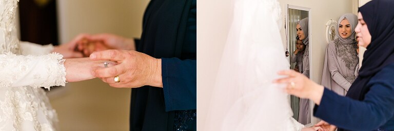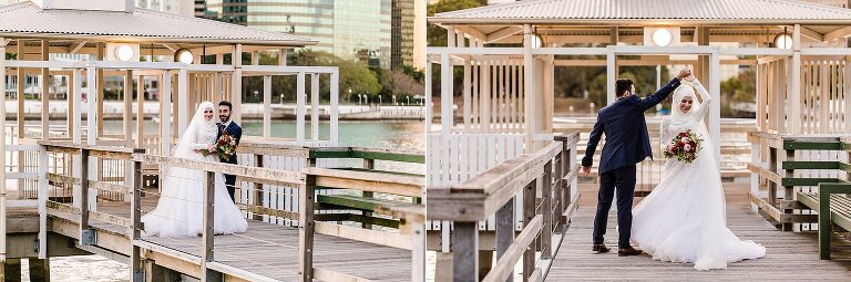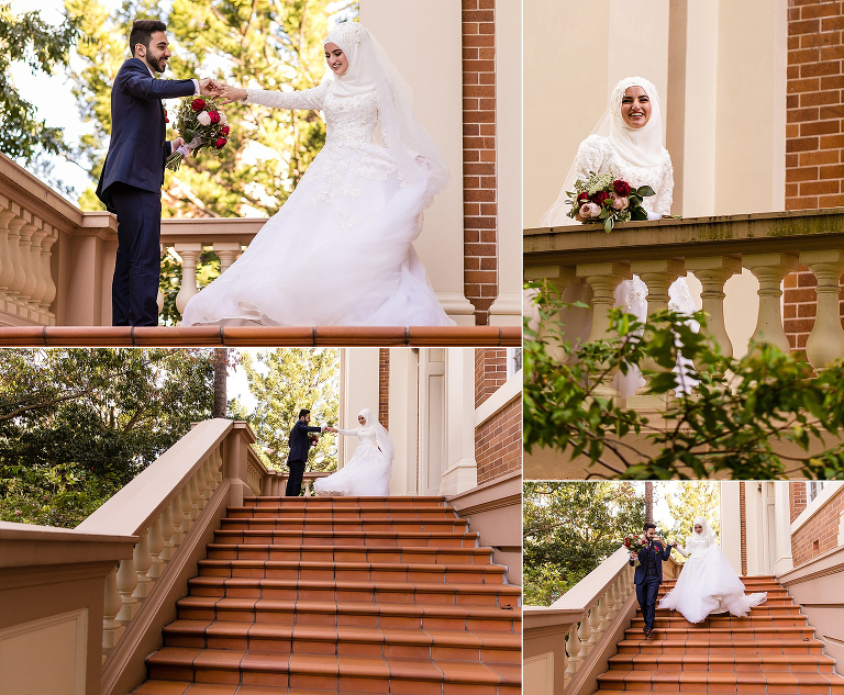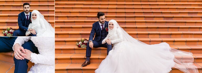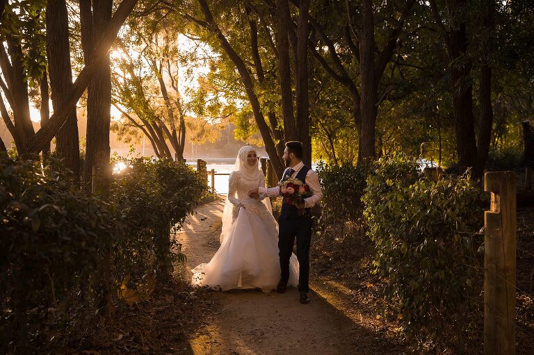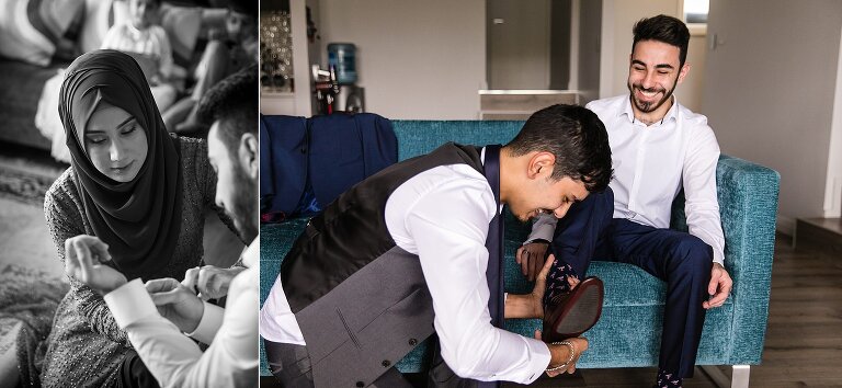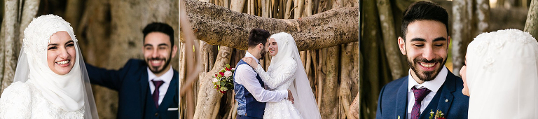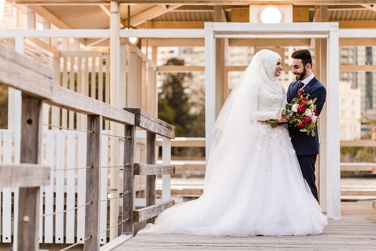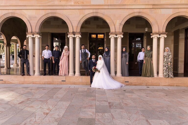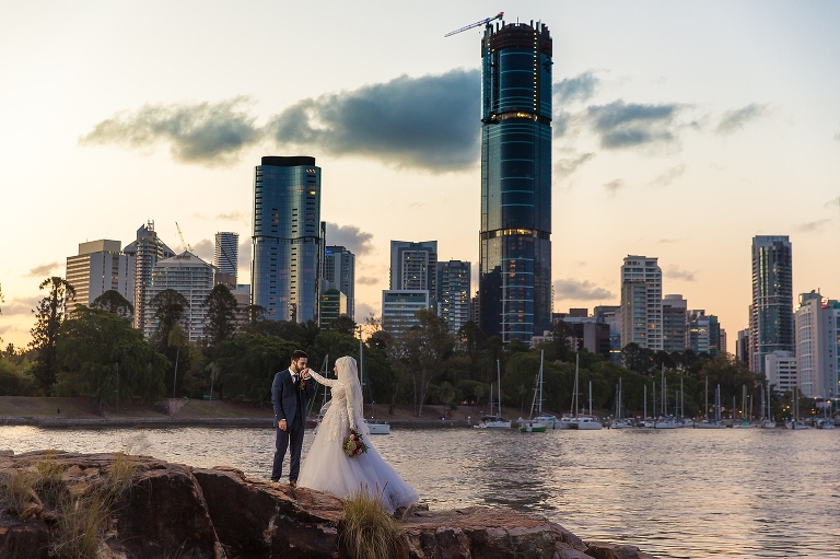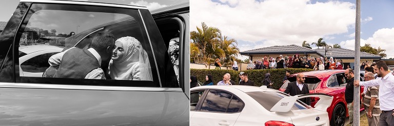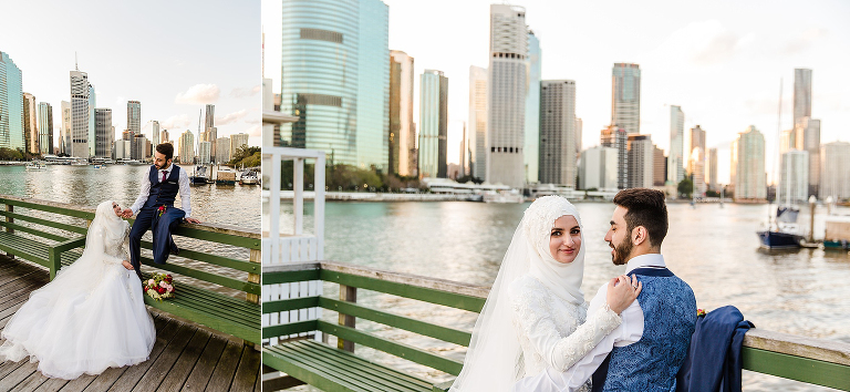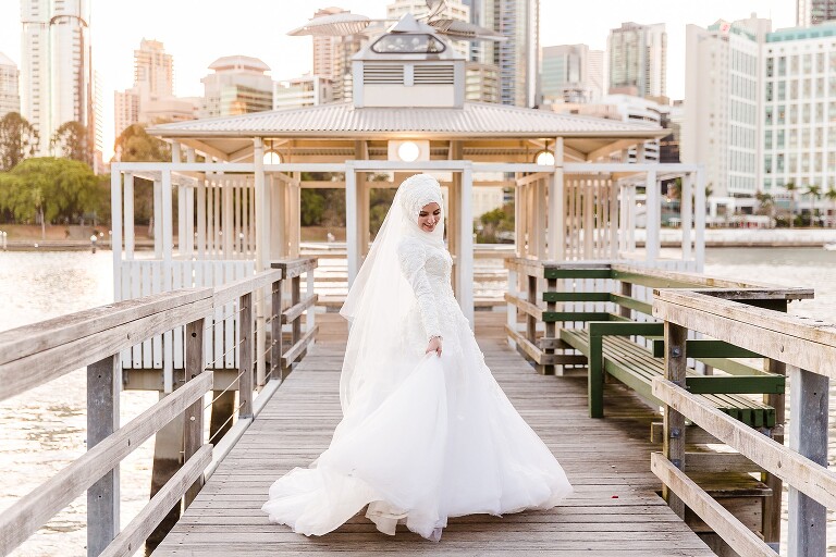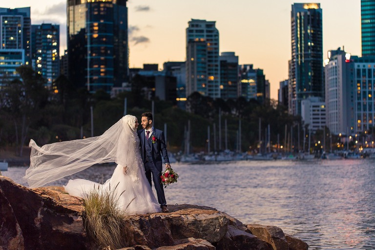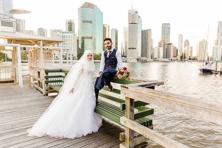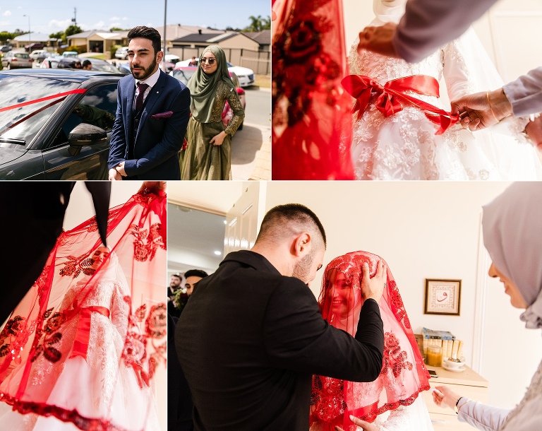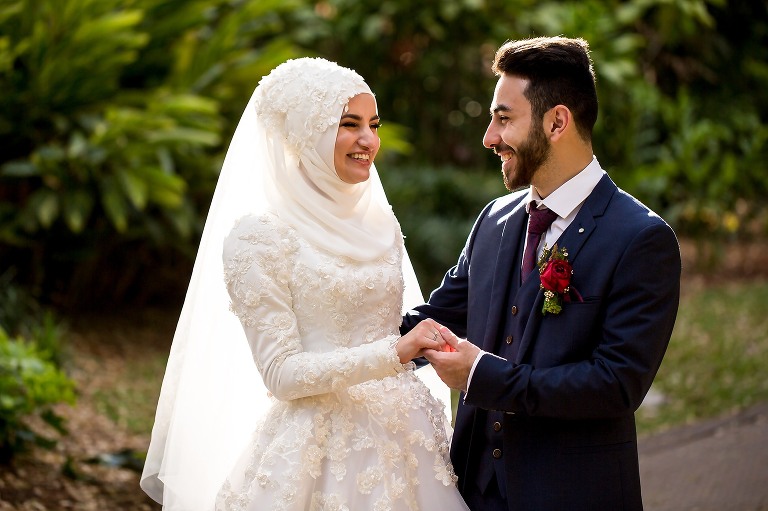 Halise + Abdullah’s day was one of the most photo journalistically-candid days we’ve had the pleasure to capture. The day started with Halise saying goodbye to her family and the groom’s family coming to unite the bride and groom. Although not an easy feat – as it is tradition to guard the door until the groom is allowed entry with monetary gifts. This happened at the front door and the room where Halise was in the house…and even blocking their getaway car! The family had quite a lot of fun with this – so much laughter. Before giving Halise away her brother wrapped a red ribbon around her and placed a red veil over her head to start her married life. She was now off to her husband’s house and welcomed with the tradition of breaking a glass before entering and having a morning tea. The actual ceremony was later that evening at the reception so we spent the afternoon around Brisbane capturing these two in love! The connection they shared in sweet glances and big smiles was infectious! Such a happy day and a full community of love outpoured for these two. Congratulations to you both!