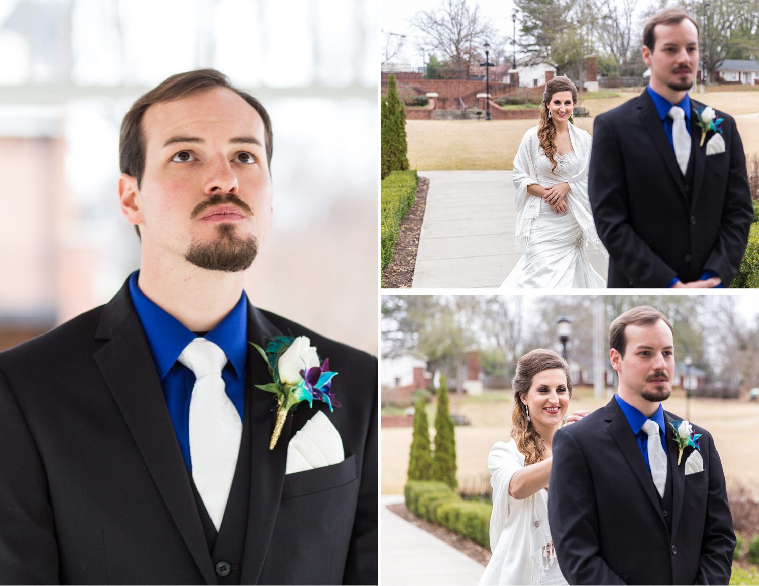 From the Bride: Josh and I met at North Greenville University in August 2012 as transfer students. We became fast friends within the theatre dept and our friendship grew into a dating relationship the next fall in 2013. We dated for a year and in Dec of 2014, Josh popped the question in downtown Greenville, SC and took me by complete surprise with a secret camera crew, fancy hotel ballroom, a beautiful ring, and an engagement party waiting for us downstairs! It was a dream proposal! And now here we are!