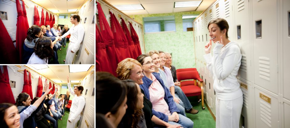 The ladies received a fun pep talk before the ceremony in of all places but the locker room. 🙂 The team was instructed to hold their flowers low (to see the dress), walk slowly down the isle, and to smile!