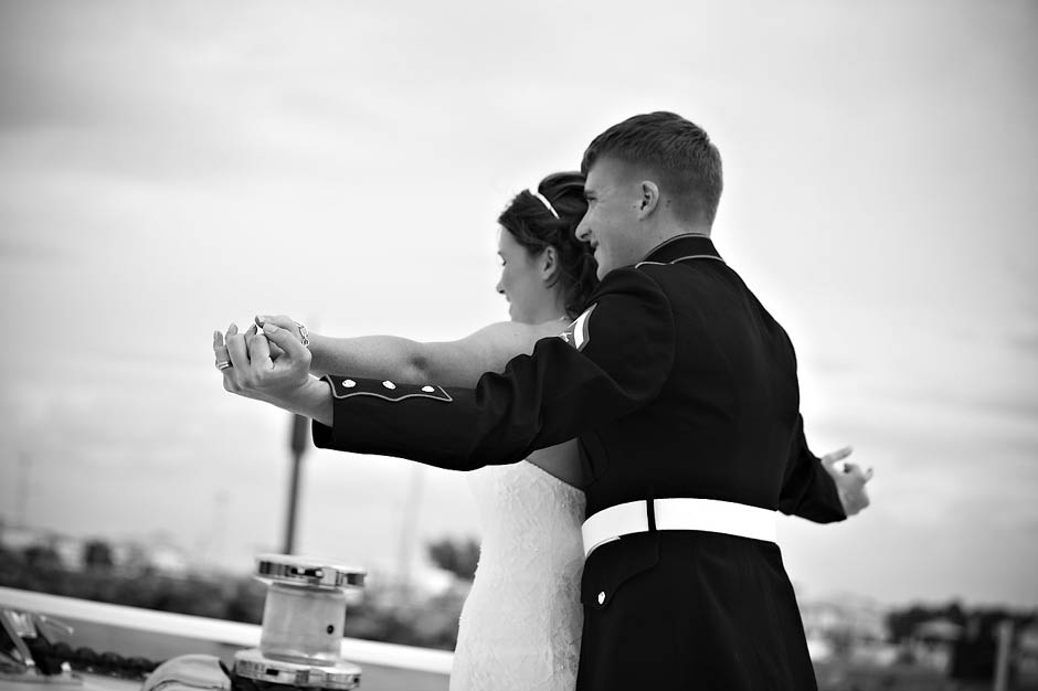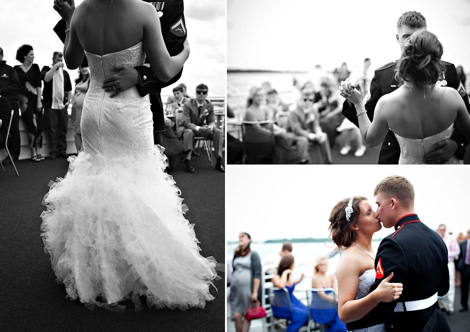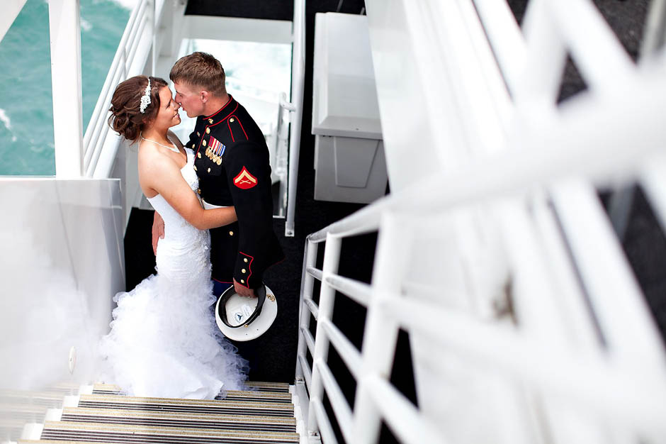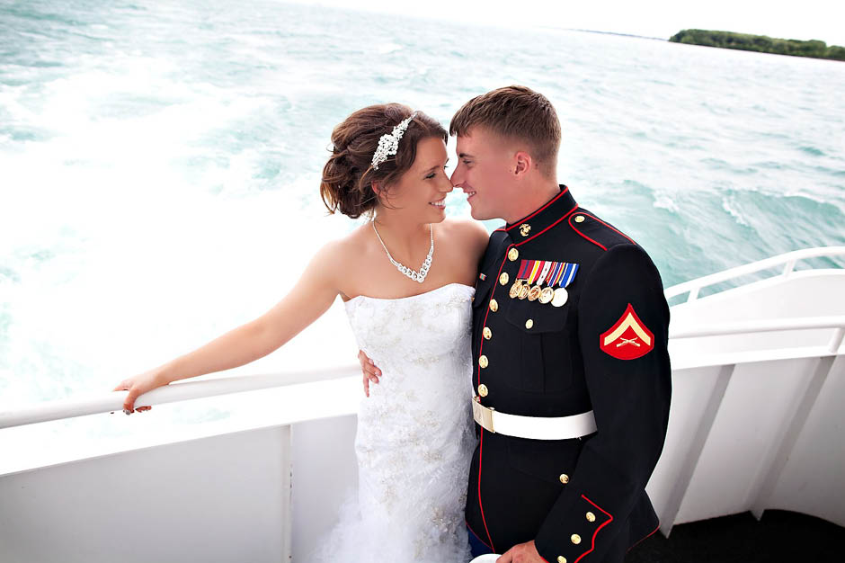 I met Jordan a year ago when we did a photography session of her with Ricky & Lucy (pups!) as a gift to Devin, who was deployed over seas. Jordan’s session was free to all deployed military and their family & fiances! An album was even sent overseas to Devin apart of Operation: Love Reunited. This was the first session where Jordan was a Marine too! How fun! Ever since then it’s been wedding talk and I was super excited to be asked to capture their wedding at St. Clair Shores, MI on Ovation Yacht Charters.