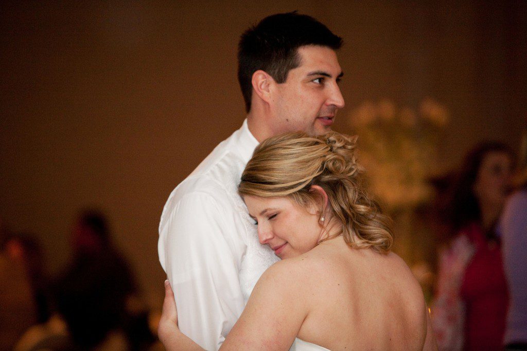 Courtney’s sisters and mom share a moment together just before it’s time to walk down the aisle. Courtney shared with me that Doug had specifically requested the “curly” hairdo!