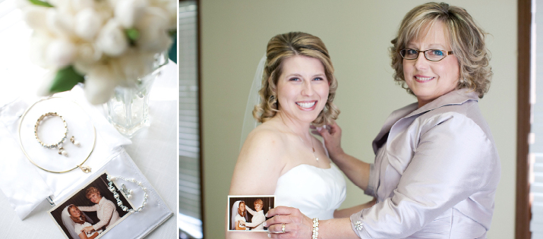 Reenacting a photo that was taken with Courtney’s mom and grandmother makes a treasured keepsake. (L) Original jewelry from mom’s wedding along with Courtney’s for today. Mom really wanted to make today special and sentimental.
