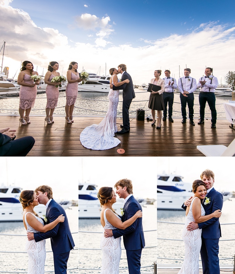 I’ve been looking forward to Kelly + Nick’s wedding… especially the part where they were getting married on the floating pontoon at the Southport Yacht Club. This is a new wedding area for the venue and it does not disappoint! They had an absolutely gorgeous wedding and guests enjoyed not only the views during cocktail hour but the relaxing sea breeze. These two met on a vacation to Greece/Turkey with a small group of friends…and became inseparable. Kelly’s sister said they were “old souls reunited” at first meeting. Since then Nick moved across the country to pursue Kelly and they have a beautiful 1 year old who practically stole the show all day with giggles… she loves the camera! Be sure to check out their FULL GALLERY to see every single amazing moment by CLICKING HERE.