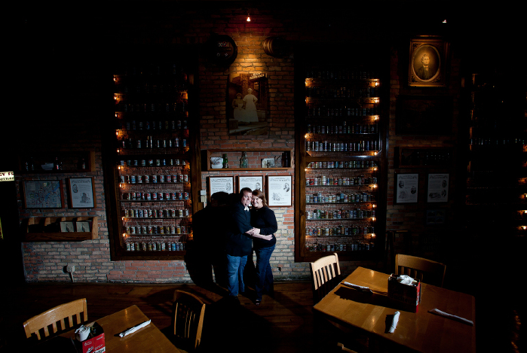 The Oliver House is said to be Toledo’s most haunted spot. Gary & Kara had their first official date here so it was important to catch the “mood.” I lit this shot where the old photographs on the wall look as onlookers to the history of the building, while they are in the midst of the setting. Kara showed me the hallway that mysteriously is chilling when you walk through it. The ladies restroom has also had multiple sightings. I followed behind her and shot a few abstract shots in hopes of “catching” something.