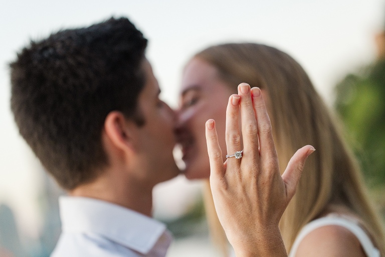After the big “yes,” we moved into a relaxed mini engagement session. Just a few minutes of natural, candid portraits captured their excitement and love, framed by the iconic city backdrop. Then, as the city lights came alive, we left them to enjoy their private picnic together, celebrating the start of their next chapter.