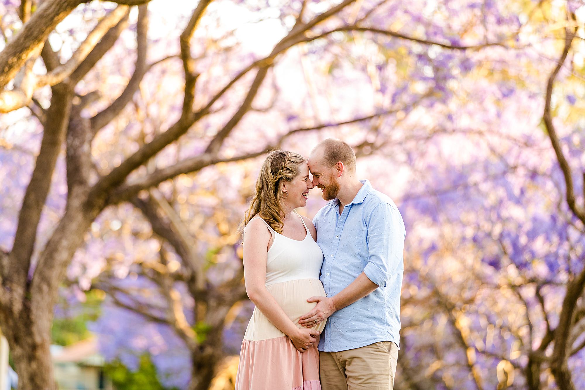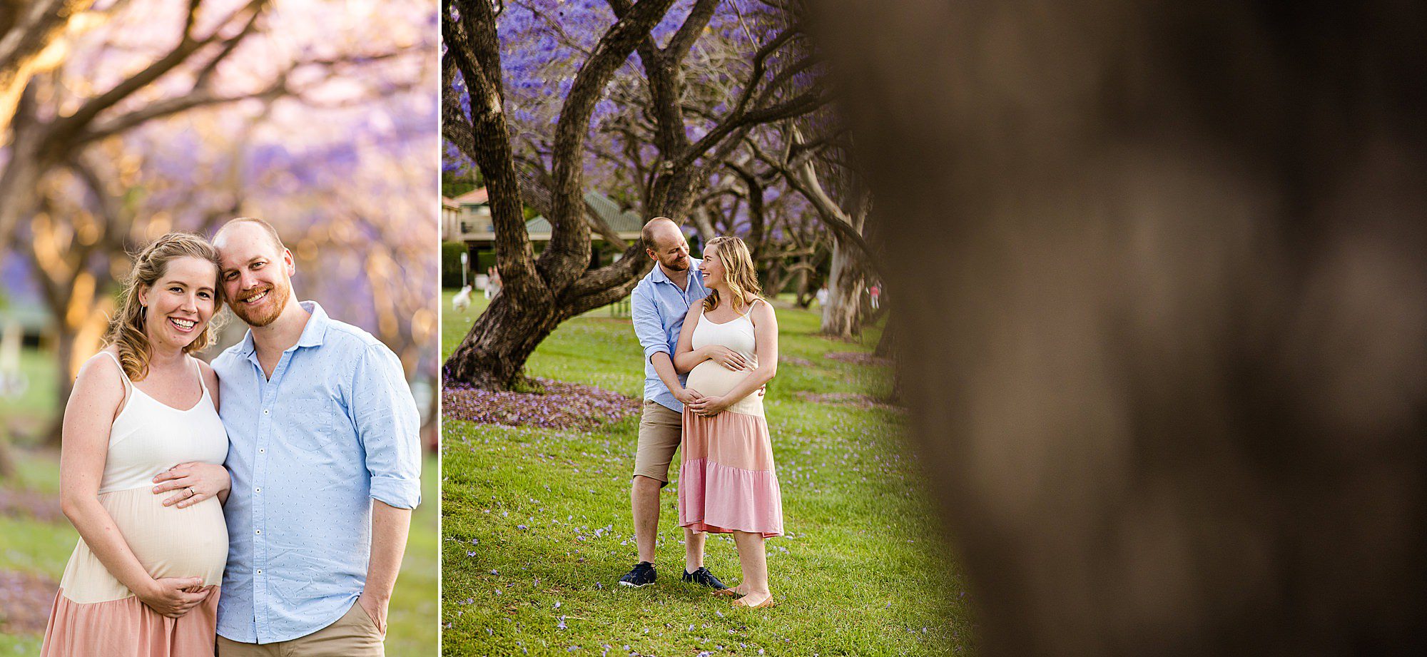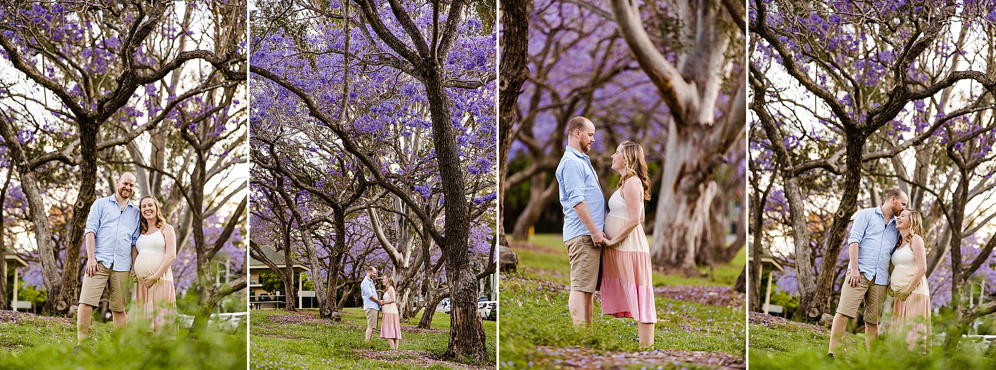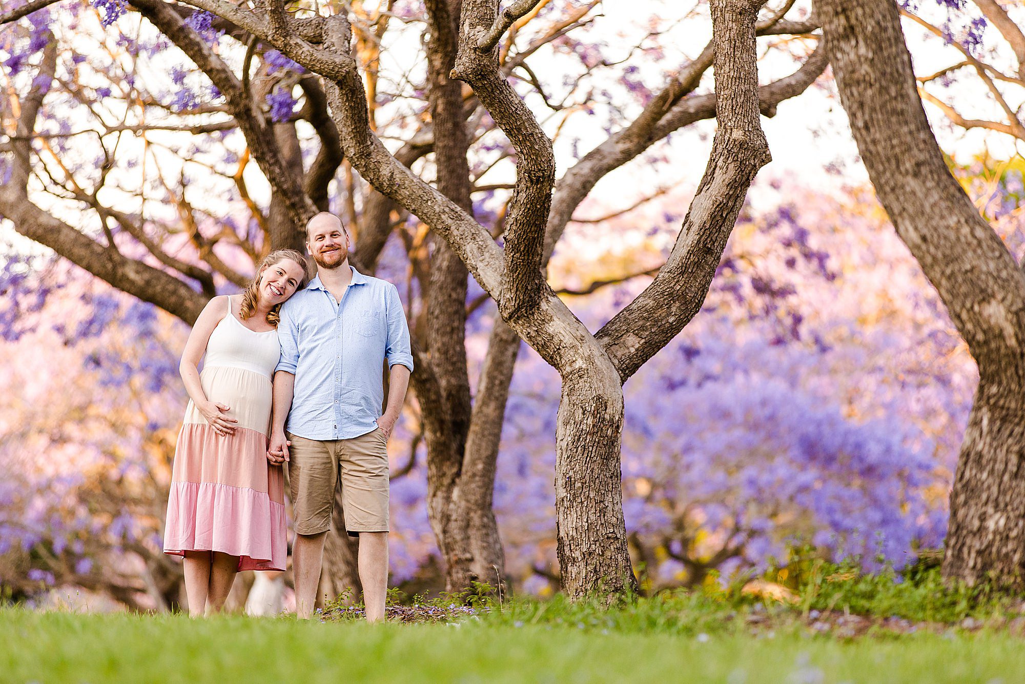 I loved sharing my “secret” best Jacaranda location in Brisbane with my favorites – Carly + Shaun. I say “secret” in quotes because on the weekends this perfect spot of purple blooms is buzzing with people. We just so happened to have to change our session to a popular weekend day because of all the rain that typically comes with Jacaranda season each year! Fortunately, I can make magic happen amid the masses when required. …and Carly + Shaun were in their own love bubble! These two are soon to be parents… soon to experience their hearts grow two sizes bigger! …and they are already bursting in happiness! To see their entire session CLICK HERE.