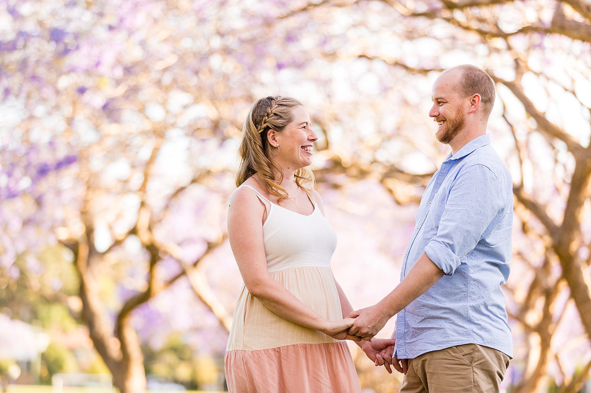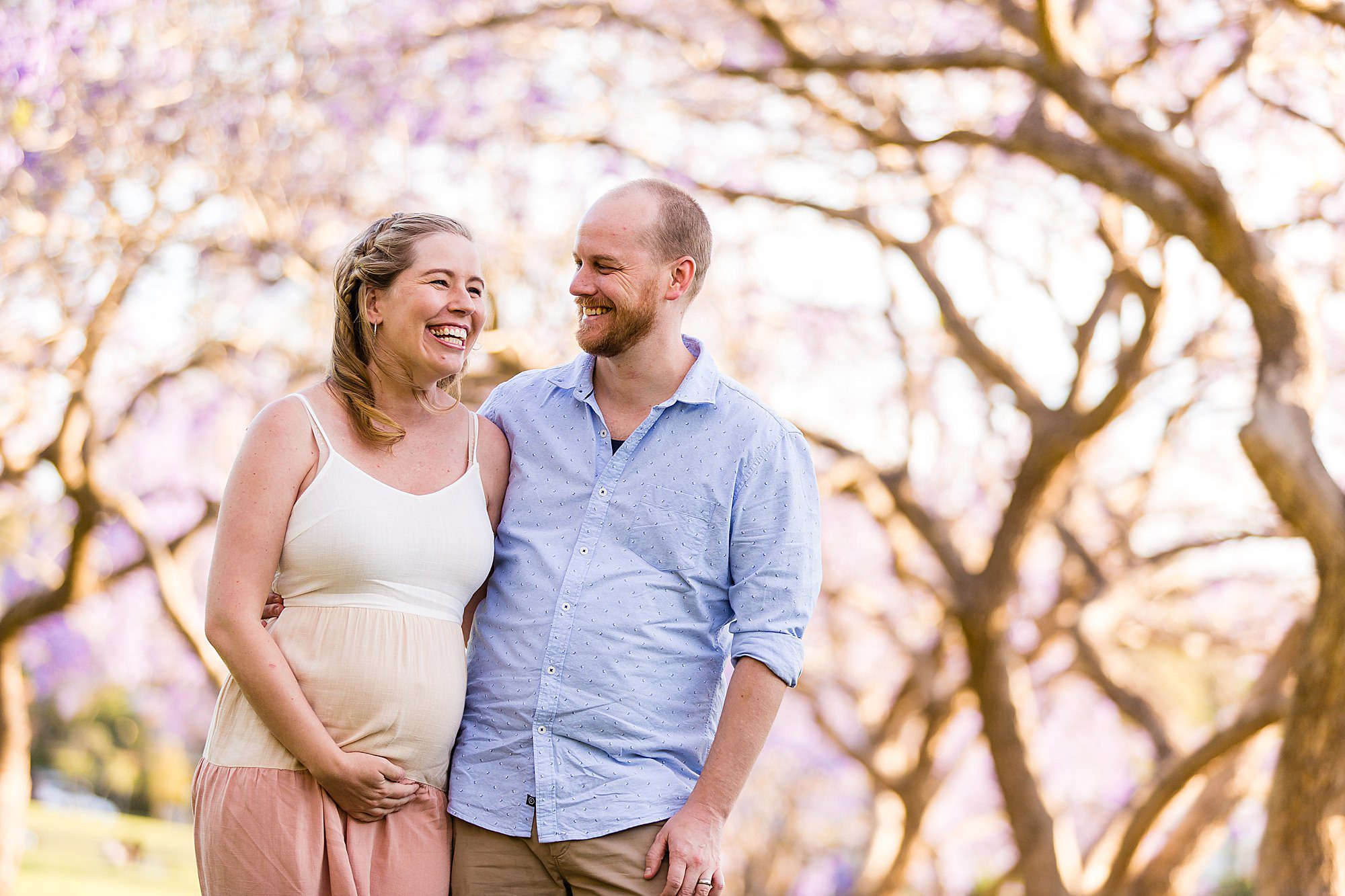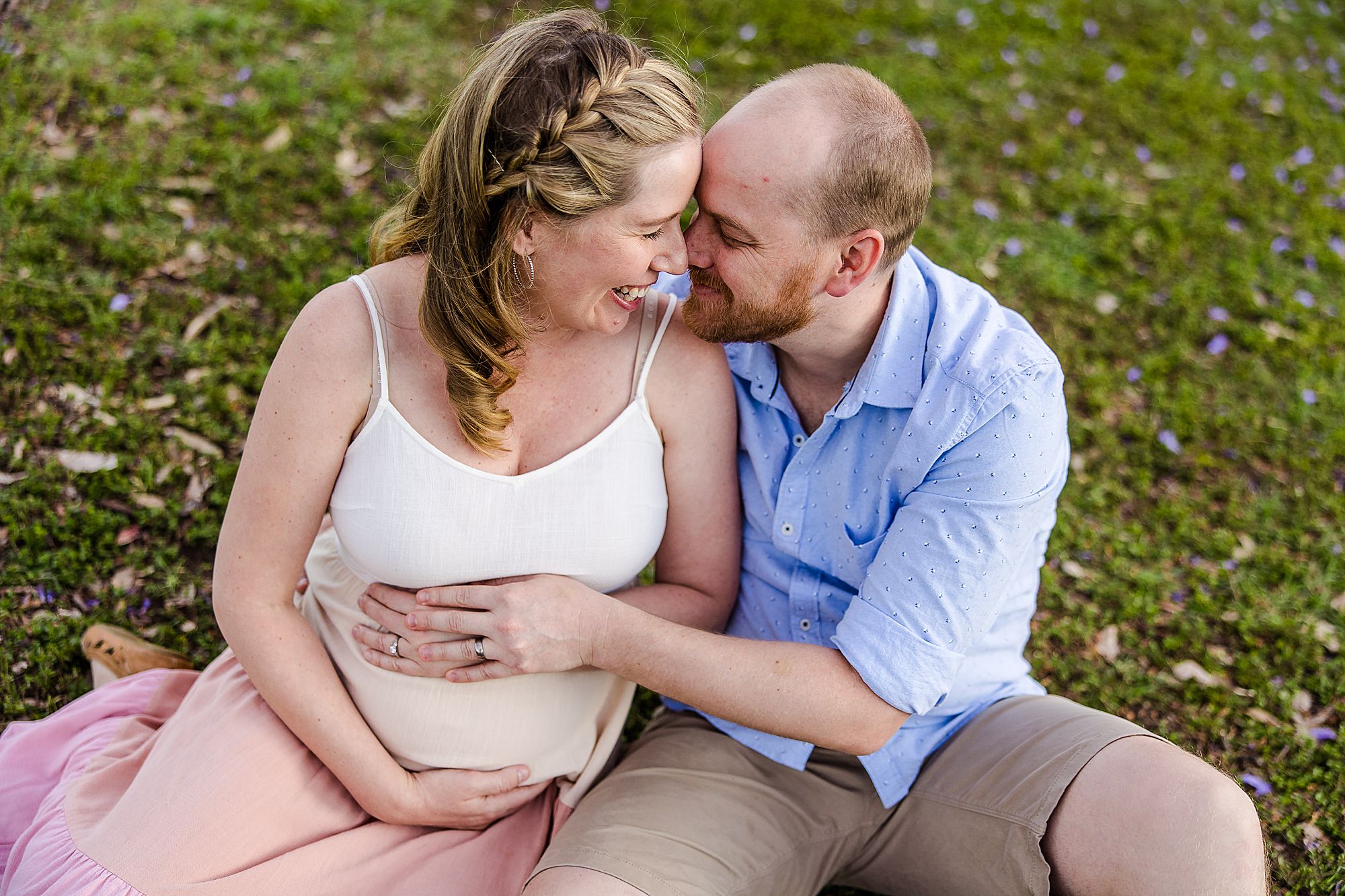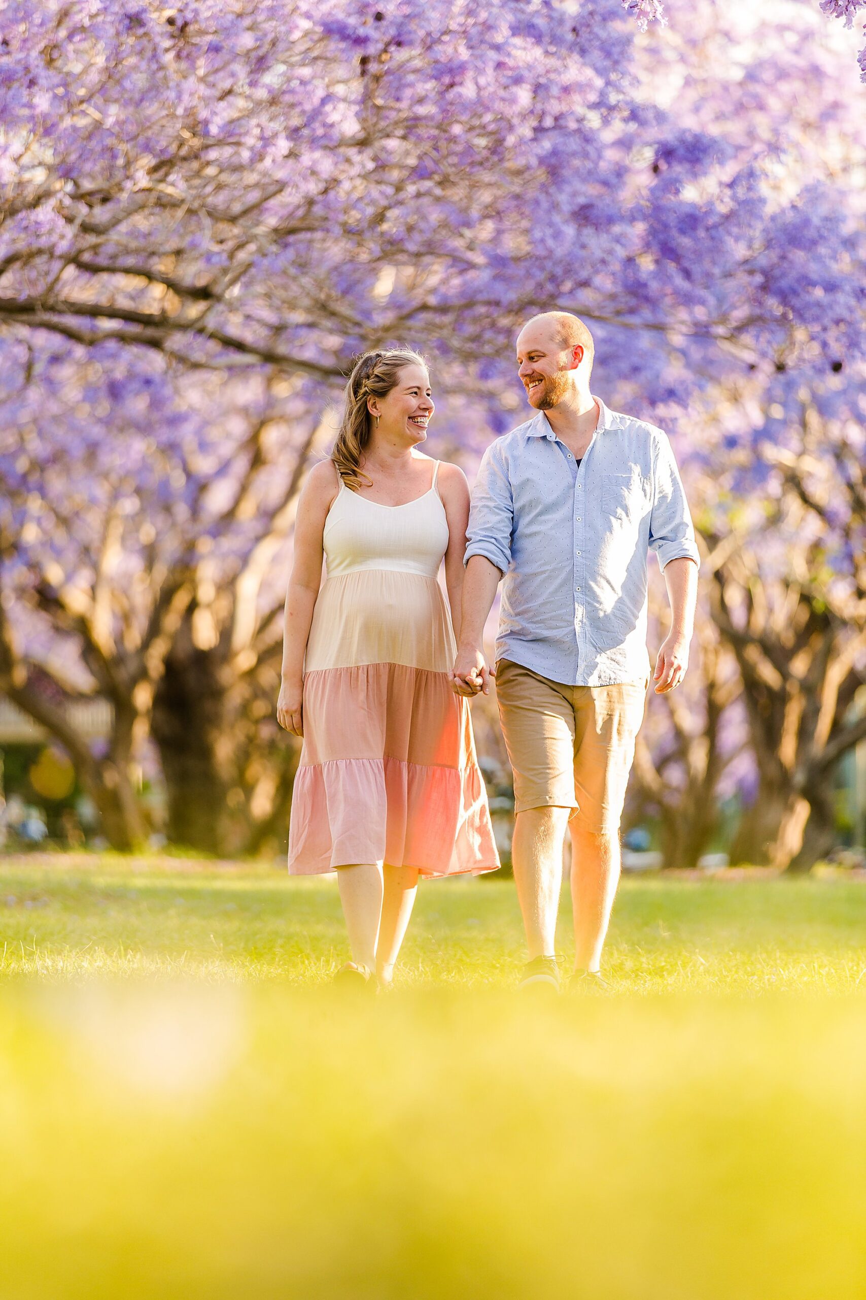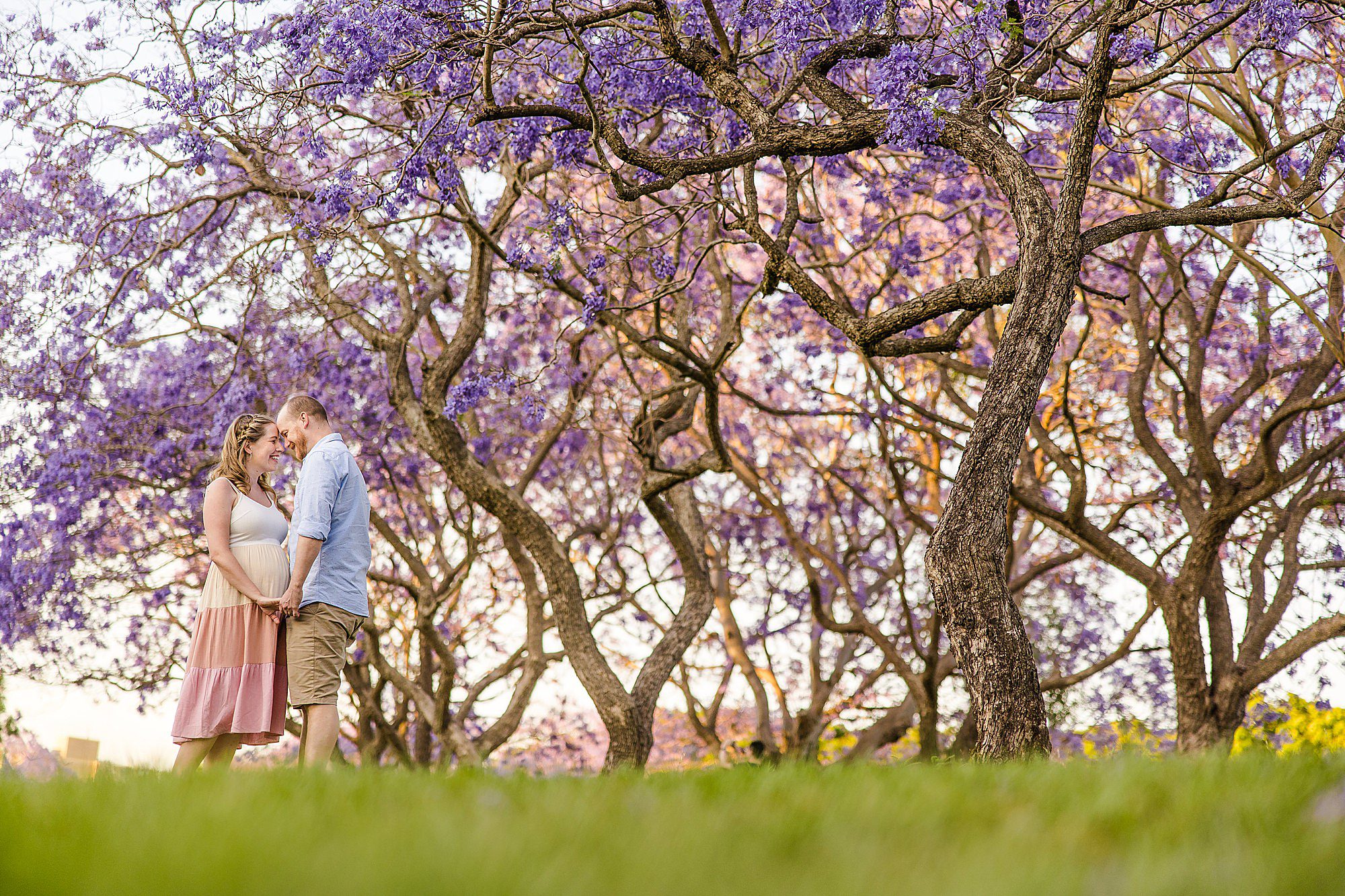 I loved sharing my “secret” best Jacaranda location in Brisbane with my favorites – Carly + Shaun. I say “secret” in quotes because on the weekends this perfect spot of purple blooms is buzzing with people. We just so happened to have to change our session to a popular weekend day because of all the rain that typically comes with Jacaranda season each year! Fortunately, I can make magic happen amid the masses when required. …and Carly + Shaun were in their own love bubble! These two are soon to be parents… soon to experience their hearts grow two sizes bigger! …and they are already bursting in happiness! To see their entire session CLICK HERE.