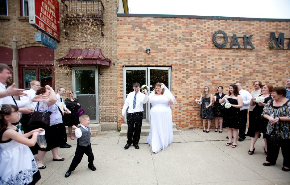 A note to all future brides… bird seed hurts! Trying to get the best shots for Jamie & Jennifer, I personally got pelted several times. The guests were overly excited or either the bags were too full of birdseed because it just kept coming. I chose to post this shot (a little far away) so you can see the guests and how happy they look.