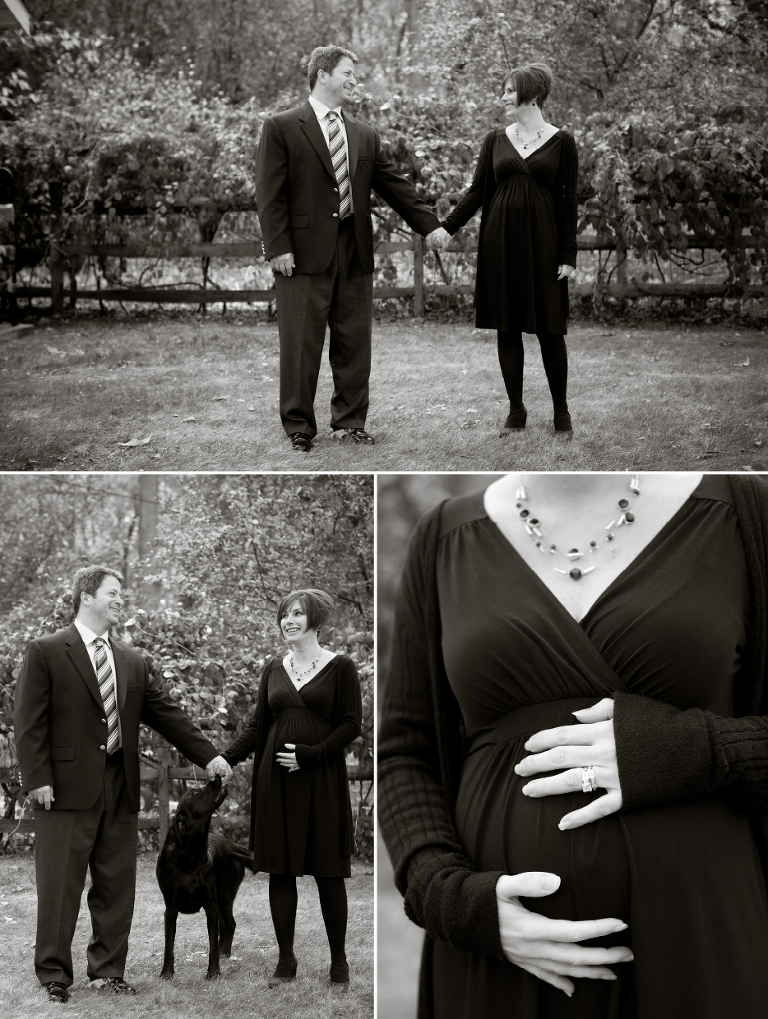 I had Jennifer hold her belly to show her “bump” because she is so very small to be due in January!! Their other baby, dog Griffin, wanted to be in every picture!! I let him have this one licking their hands.