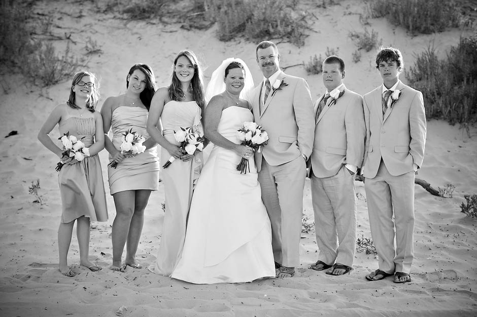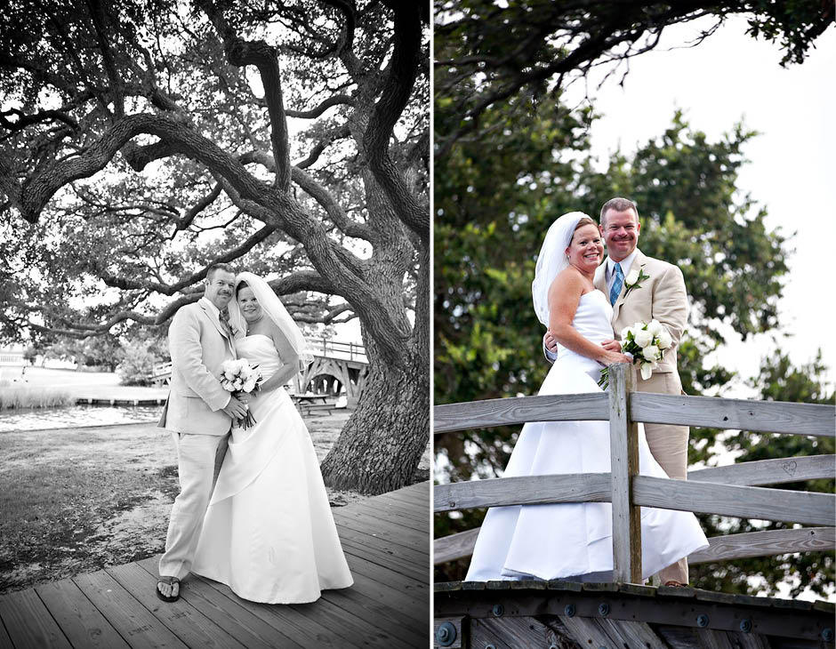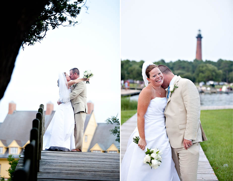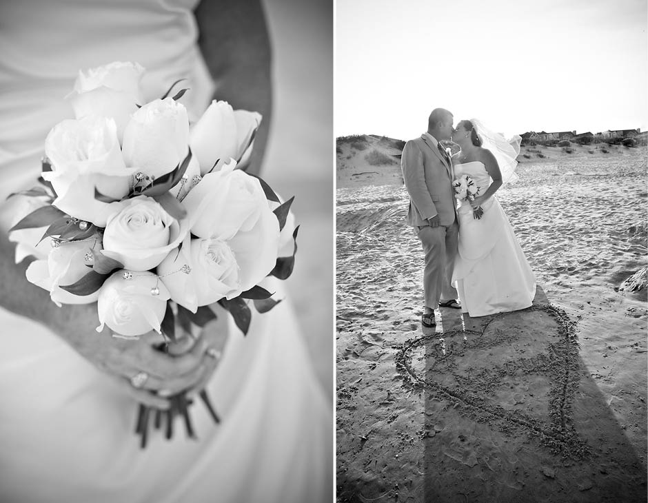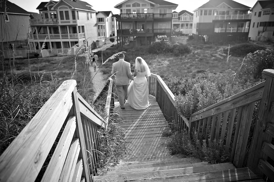 I met Joel + Julie five years ago… and as their kids describe it… they have been dating FOREVER! 🙂 I was sooooooo excited to be asked to be apart of their destination wedding in the Outer Banks last Wednesday. I am a So. Carolina native but have never been to the world famous Outer Banks, go figure! Outer Banks is a very long (200 mile – 320-km for my Aussie friends!) string of narrow barrier islands. They are known for wild horses and the ability to 4wd on the beach! Yup… I’m sure that’s the attraction for Mid-westerns to come here… since most go to the Dunes in Michigan. Pretty similar family style vacations here but very LARGE houses on the beach (perfect for the Goins-Whitmore’s because they are a LARGE family!) and OBX is not as far as FLORIDA (note for Ohioans).