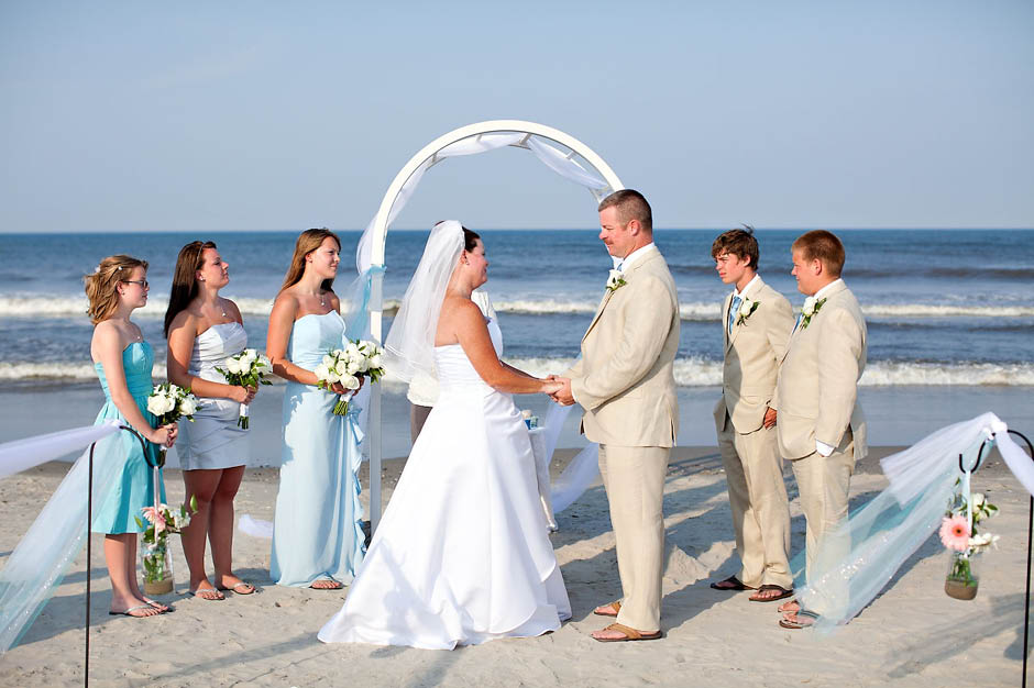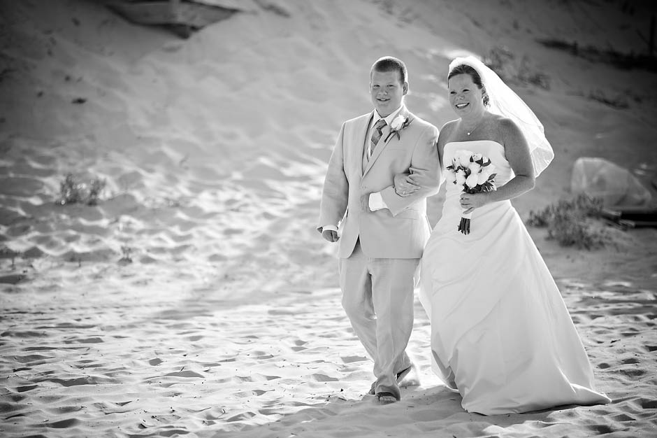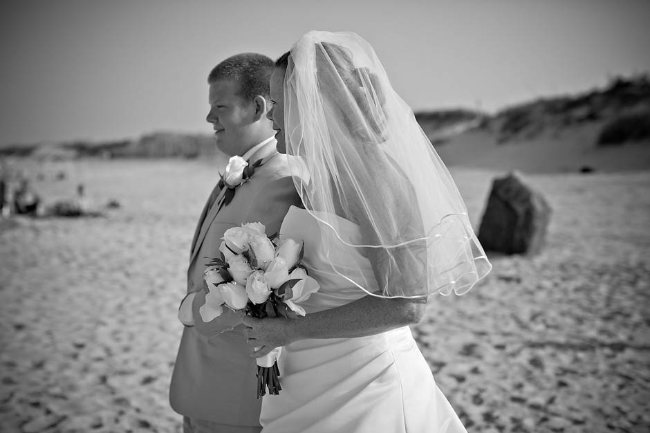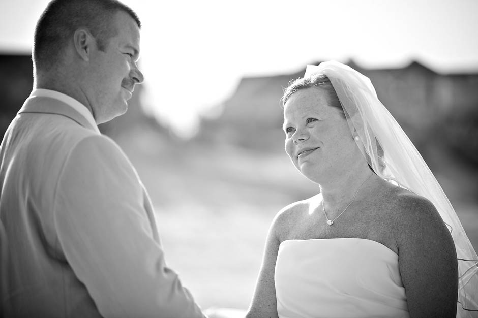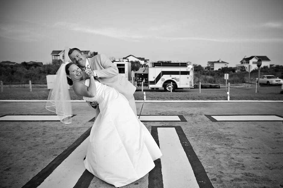 I met Joel + Julie five years ago… and as their kids describe it… they have been dating FOREVER! 🙂 I was sooooooo excited to be asked to be apart of their destination wedding in the Outer Banks last Wednesday. I am a So. Carolina native but have never been to the world famous Outer Banks, go figure! Outer Banks is a very long (200 mile – 320-km for my Aussie friends!) string of narrow barrier islands. They are known for wild horses and the ability to 4wd on the beach! Yup… I’m sure that’s the attraction for Mid-westerns to come here… since most go to the Dunes in Michigan. Pretty similar family style vacations here but very LARGE houses on the beach (perfect for the Goins-Whitmore’s because they are a LARGE family!) and OBX is not as far as FLORIDA (note for Ohioans).