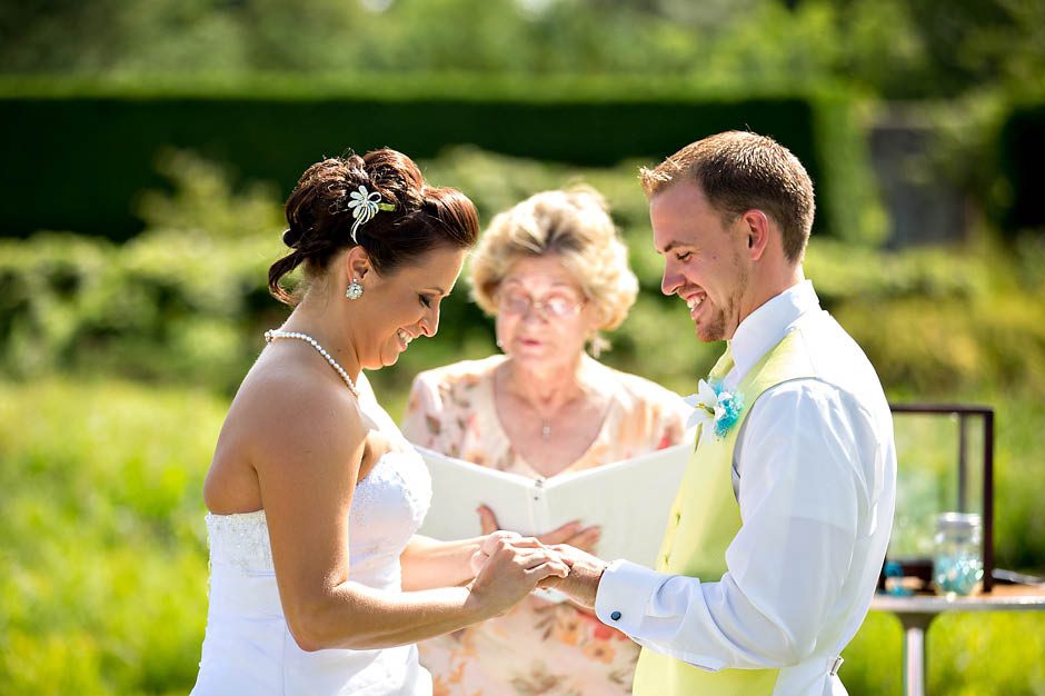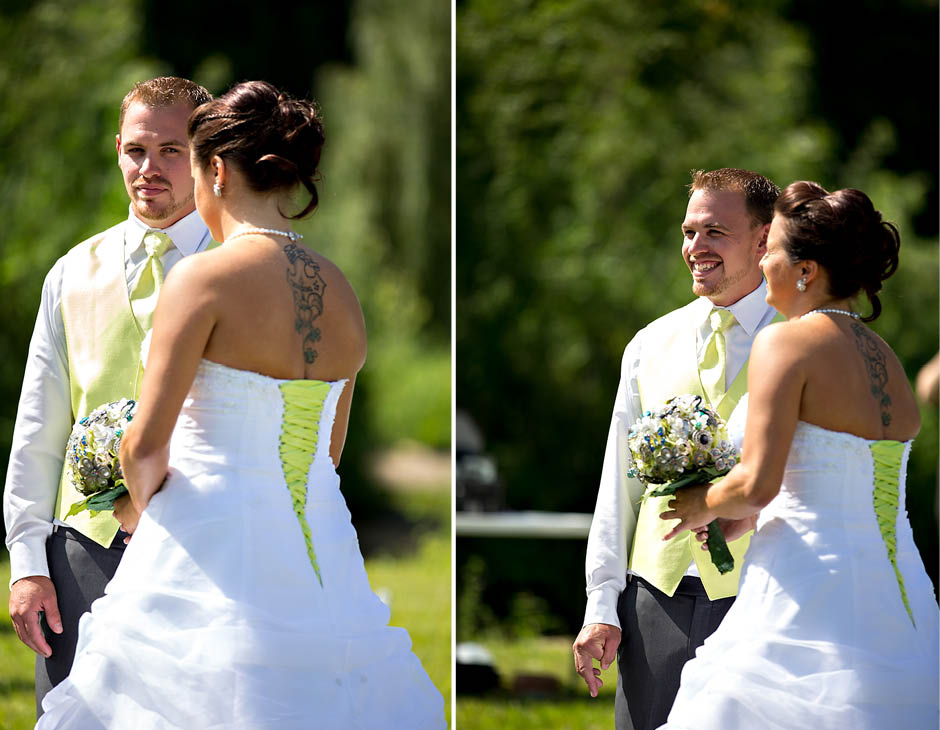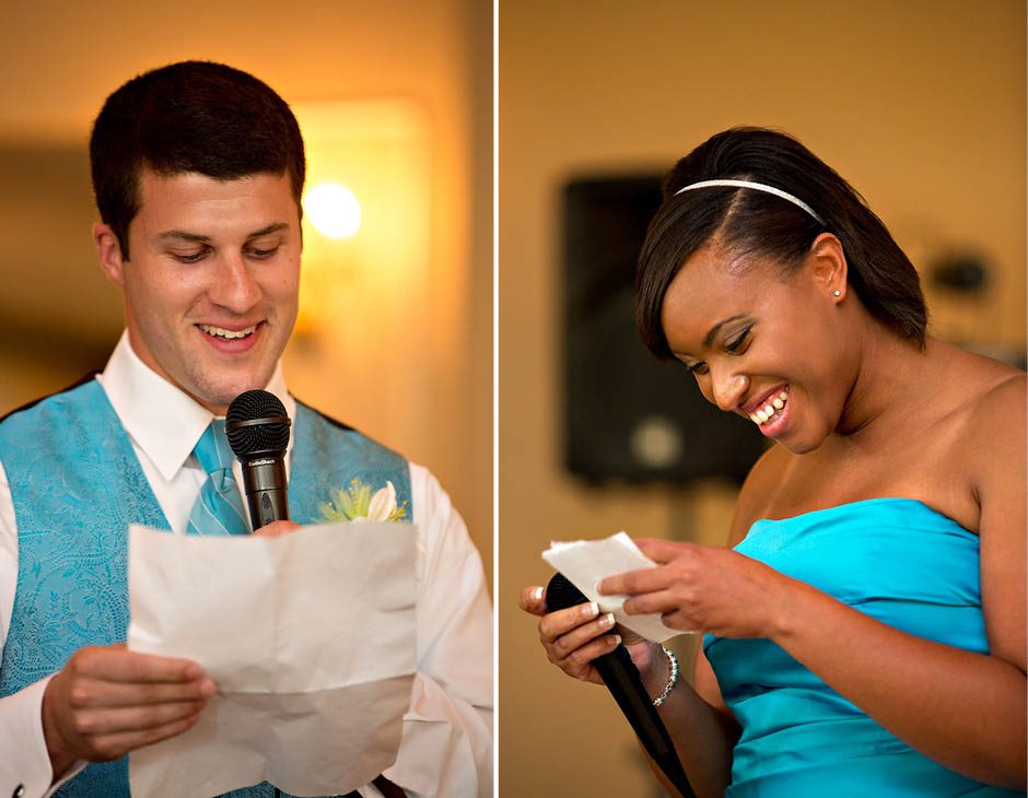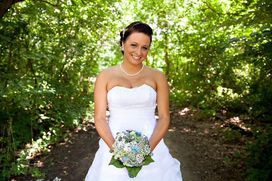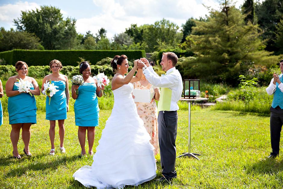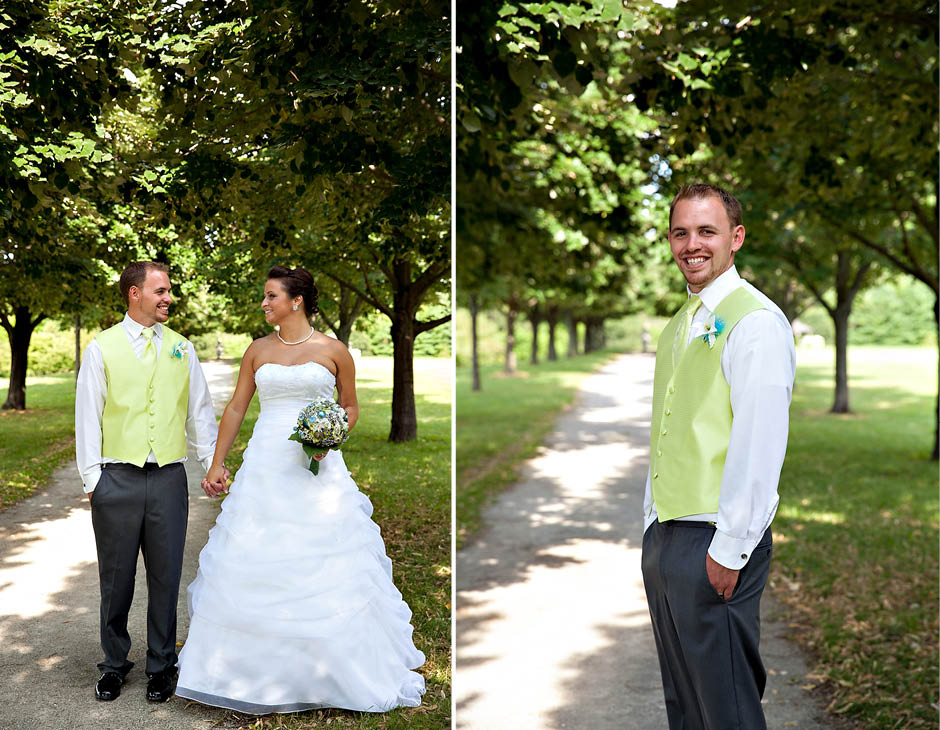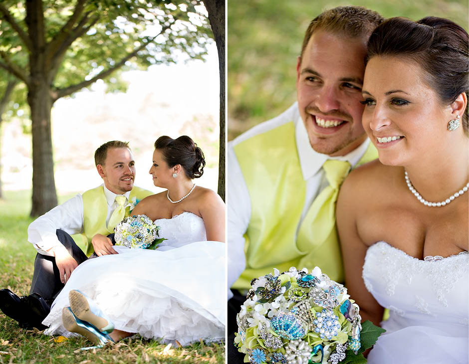Justine + Steven are married!! I loved all the details Justine put into her wedding… she collected broaches from friends/family to make her bouquet ‘just right’ with her wedding colors of blue and lime! Gorgeous!! They were also blessed with a perfect day of sun, blue skies, and puffy white clouds! The ceremony was beautiful. Justine’s dad walked her down the isle in his dress uniform. They incorporated two unique ceremonies into the program. They had a hand ceremony where they face their palms up over each others palms while the minister read the vows they were making to one another. Also, before the ceremony each of the guests were given a bag of clear blue and lime rocks. During the events they were asked to take a moment to make well wishes for the couple on them and then place them in a keepsake box just before the couple also poured in their mason jars full of colored stones as well. The guest nearest me wished for “4 future kids” for the couple!! hahhaa. Justine — just so you know… most of my brides become pregnant within a year of marriage. If I had to guess… I would say it’s about 80% of my brides!! 🙂