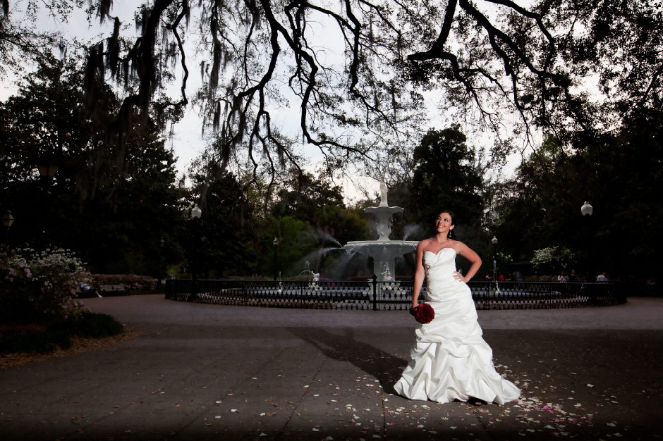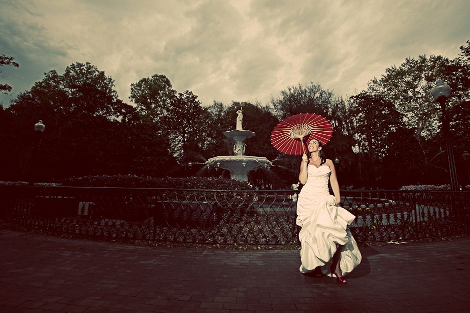This past weekend I was in Savannah, Georgia! I was down south for multiple reasons. It just so happened to be my friend Eden’s 30th birthday so we HAD to do a fun girl’s weekend. Eden is a photographer like myself and I knew it wouldn’t take too much arm twisting to get Lauren McClain back into her wedding dress! 🙂 Lauren chose me to photographer her wedding last October. She was a beautiful bride then and is again now parading around Savannah! Lauren and David both live in Savannah and I’ve been dying to do a session in their town. This is technically a trash the dress session. Not that a bride has to actually trash their dress but it’s a little less stressful to do unique poses on a day after the wedding. In the south this is done before the wedding day and is called a bridal portrait. When it’s done after the wedding the session is called TTD or trash the dress.