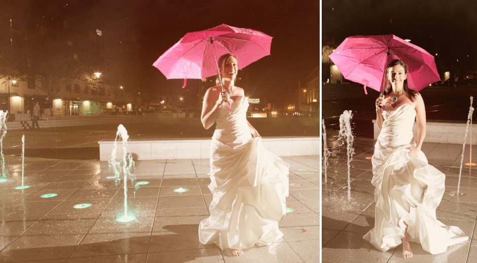 A little behind the scenes to capture these shots… You can see Lori crouching behind Lauren… Eden shooting here… David holding another light. 🙂 The left is just with the straight flash, the right shows a second flash aka crouching Lori. ha ha ha.