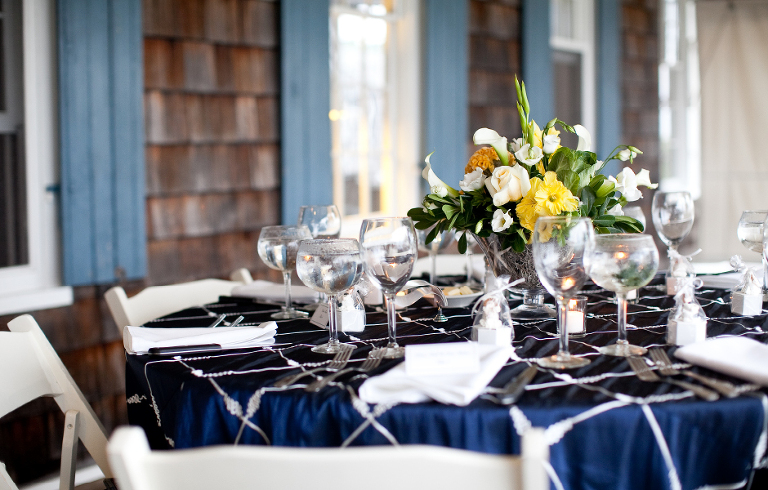 I really enjoyed seeing this navy table cloth! I have a obsession with collecting table cloths and antique dishes… I have a round table at home so I always get great ideas from weddings on how to decorate at home when I decide to do different themes when guests are in town.