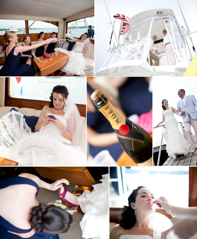 An hour before the ceremony, Shay’s dad took the girls out for a harbor cruise. Shay was checking the weather every 30 seconds!! 🙂 Right when we all boarded it started raining…
