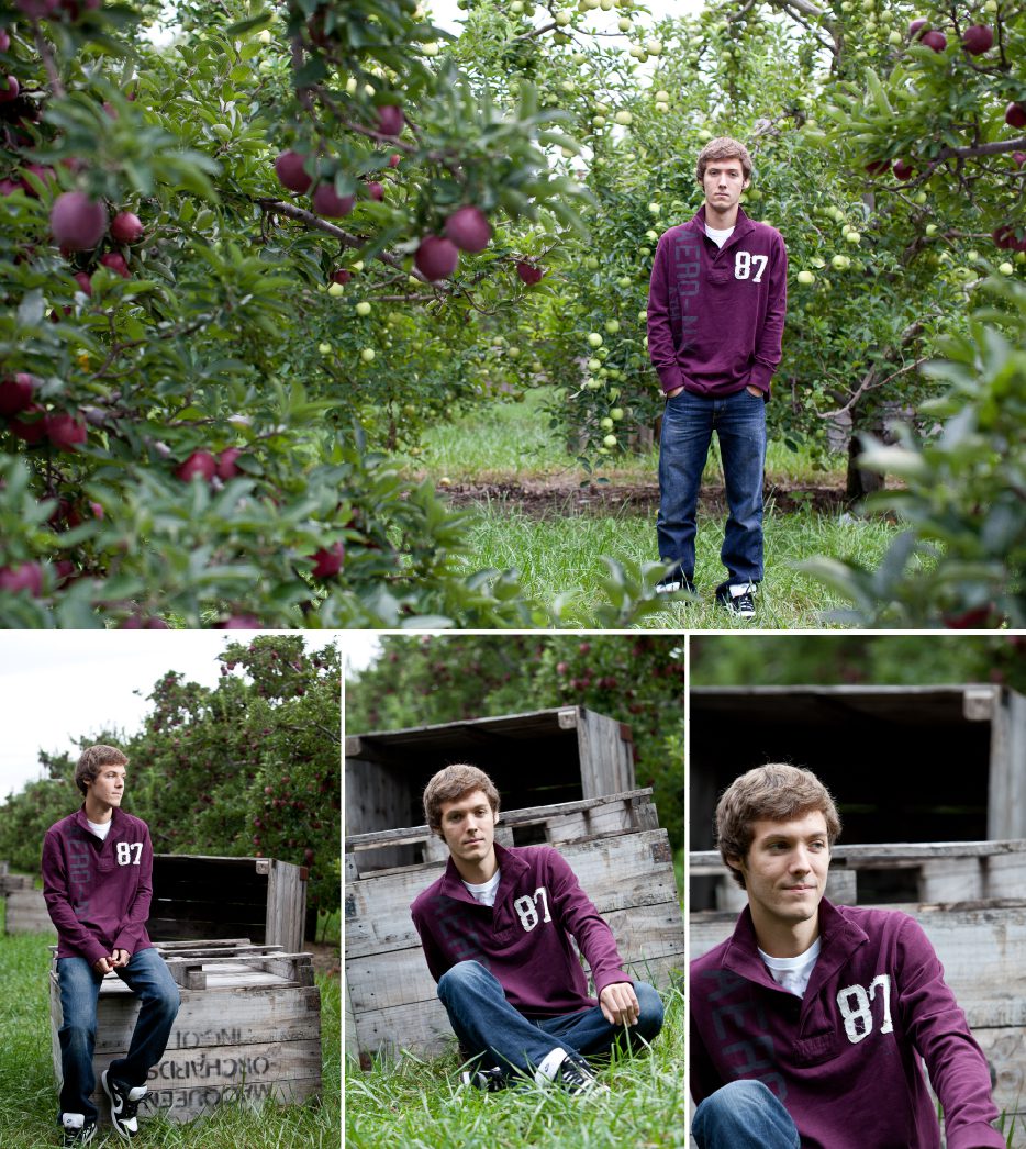 Mike’s Senior portraits were so much fun to shoot. I had my hubby for the day as my lighting assistant and of course to carry my gear… love it! We met first at MacQueen’s Orchard to capture these next few, which are my favorites! This year I have been using studio lighting in natural environments for a more dramatic feel. I think it works great for Mike’s portraits.