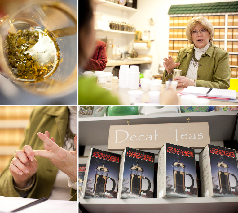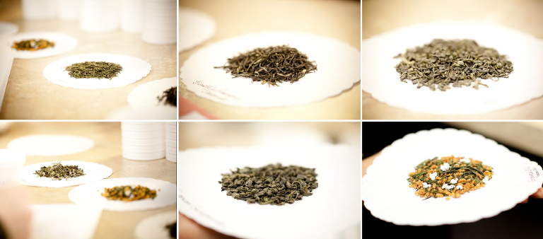 As I continue to earn my “tea snob” certificate, this week I learned about green teas. I love trying the variety at Elaine’s Tea Shoppe. As you can see they are all green teas but very different. Green tea flavors are more subtle. If you’ve tried green tea before and you experienced an unpleasant grassy taste… it’s because the tea was over brewed. Green teas should only brew 1:30-2:00 minutes from 175-185 degrees. Less time if you are using a tea bag… maybe even just :10-15 seconds. The green teas we tasted were from China and Japan. Green teas are a 10 part process, mainly undertaken on small farms. It’s a fine art that’s passed from generation to generation. The most expensive tea is .35-.40 cents a cup. Inexpensive compared to the labor that goes into making the tea. It can be a full day to just get a small batch. Compare this price now to a cup of Starcucks.