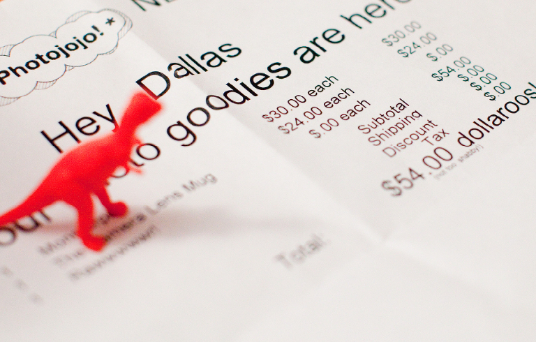 …and better yet! Freeeeeee!!! I’ve never gotten so excited about reading an invoice before either… they listed the total in dollaroos, customized name in bold type, and let me know my GOODIES had arrived! This was fun!