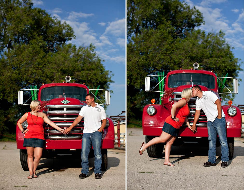 I found myself in Silver Lake, MI for Ryan + Alisha’s engagement session. It was a fun day that started out on The Dunes. Ryan took us on a jeep ride up and down the dunes then we spent the afternoon with the family on Lake Michigan. It was a perfect day. I met Alisha’s family a few months back when I did her sister Mikaela’s senior portraits. I have been to the dunes only once before. I took the ‘tourist’ ride on the over sized Jeep with 20 some odd other vacationers. Ryan’s ride was quite different. The ‘hills’ I thought I went on prior weren’t actually the ‘dune’ size the area was known for… I must admit I was scared at first. I had just had a medical boot put on so I didn’t quite know how the ride would end. I held my foot up and closed my eyes up the first dune. I was still alive. 🙂 We went up and down a few more and by the end of the day and the ride back I was really enjoying myself. Right near sunset we left to visit The Foxbarn for our session. Here are the first few where we found this parked out front!!!