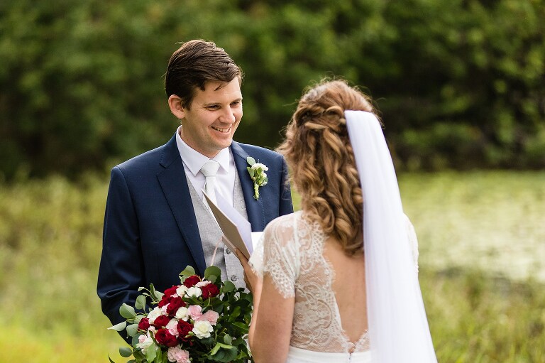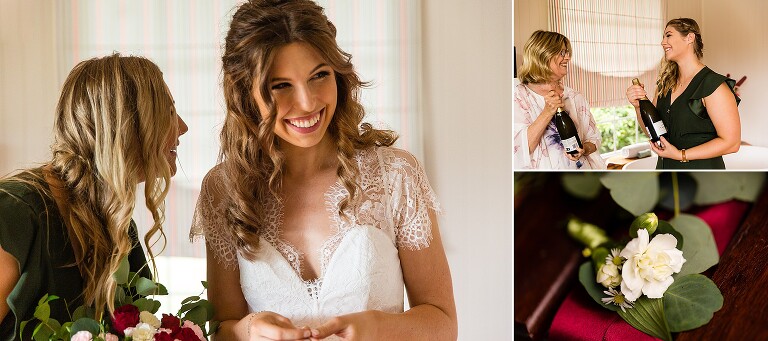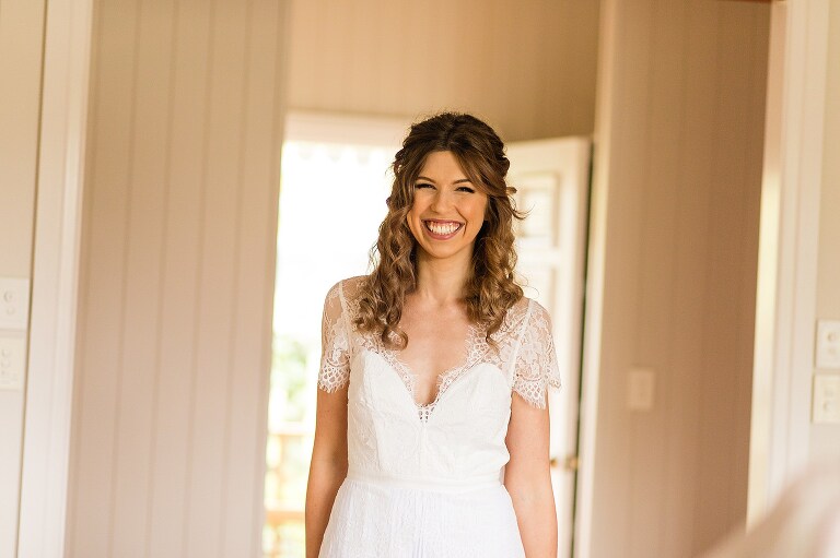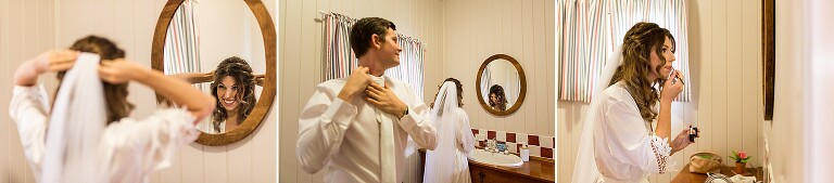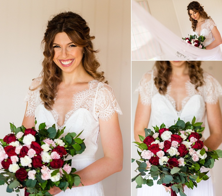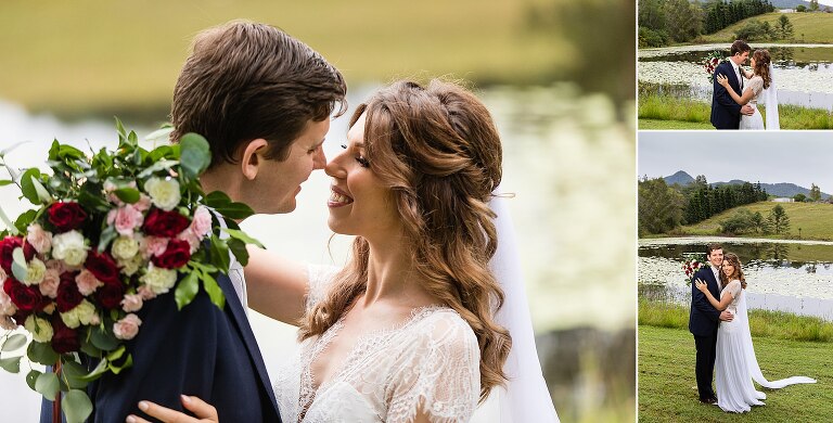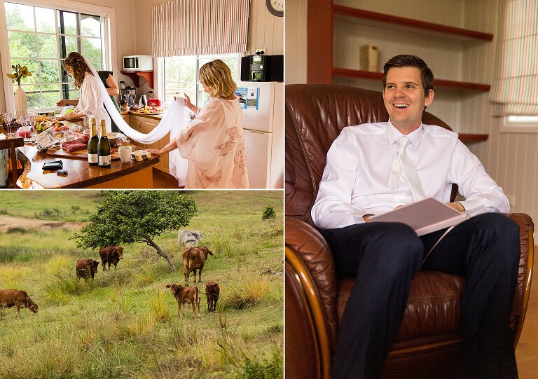 When I arrived to the cabin I saw the groom getting ready in the bathroom, the bride putting on the final touches to her hair just in the other room, and the wedding dress hanging out in the open for the groom to see!!! I immediately gasped… Callan is allowed to see THE dress??? Nicole smiled and reminded me this was no ordinary day. Callan in fact also helped Nicole curl her hair! Nicole assembled her own flowers and his boutonniere. A lavish grazing hamper was also assembled with her sister…and the ‘to die for’ scones her mum said Nicole makes. So much love was put into the day of just four, which included the couple and her mum and sister.