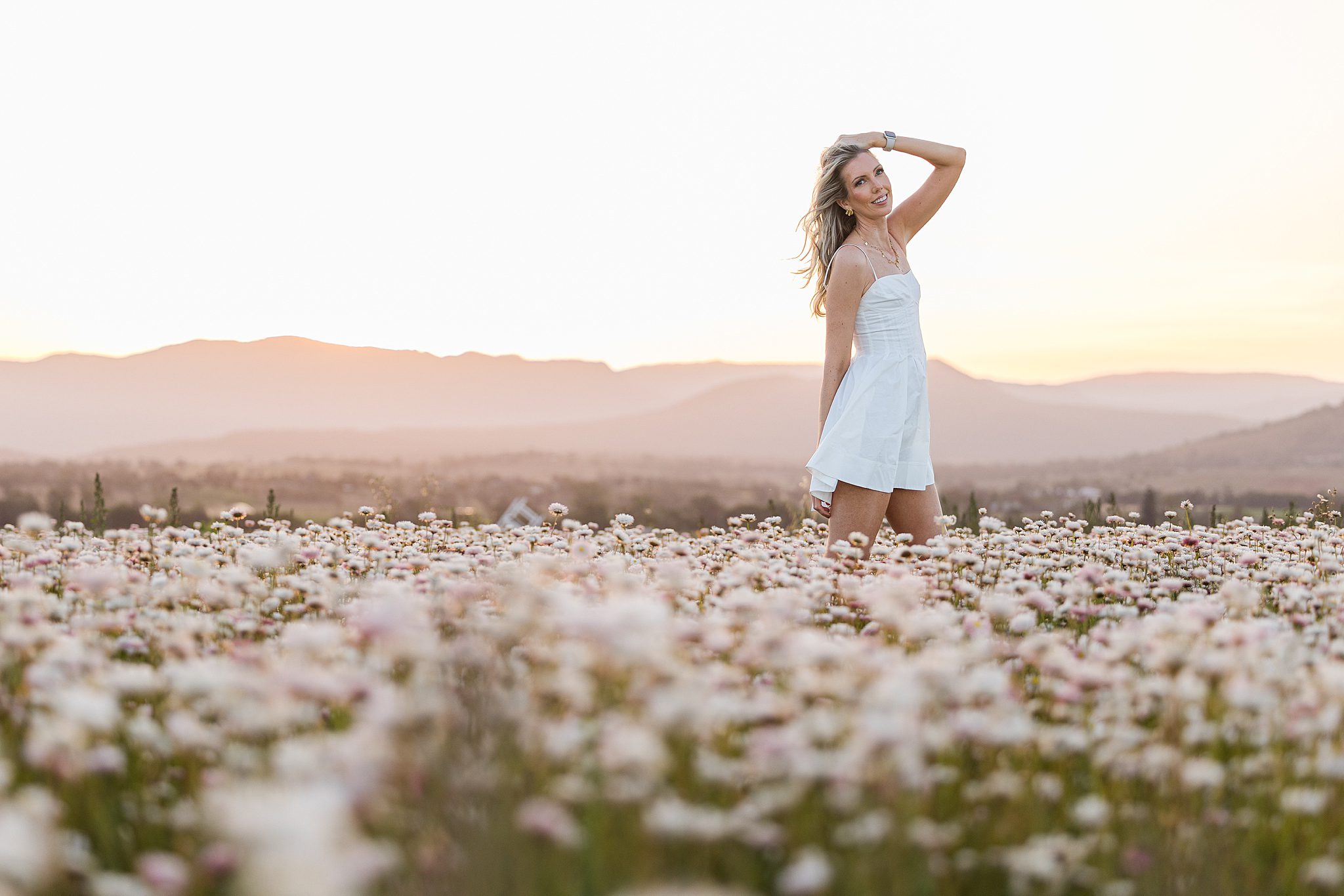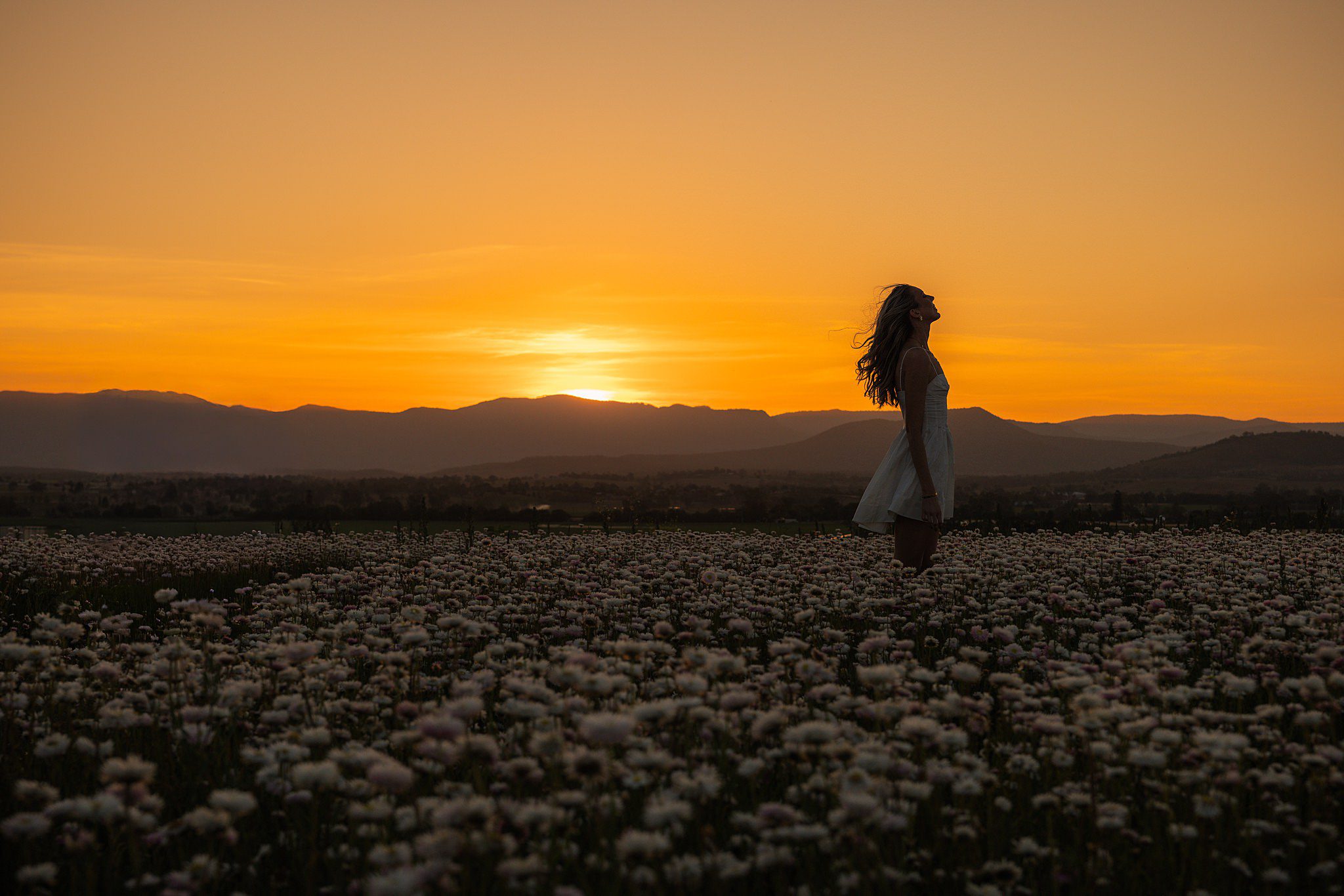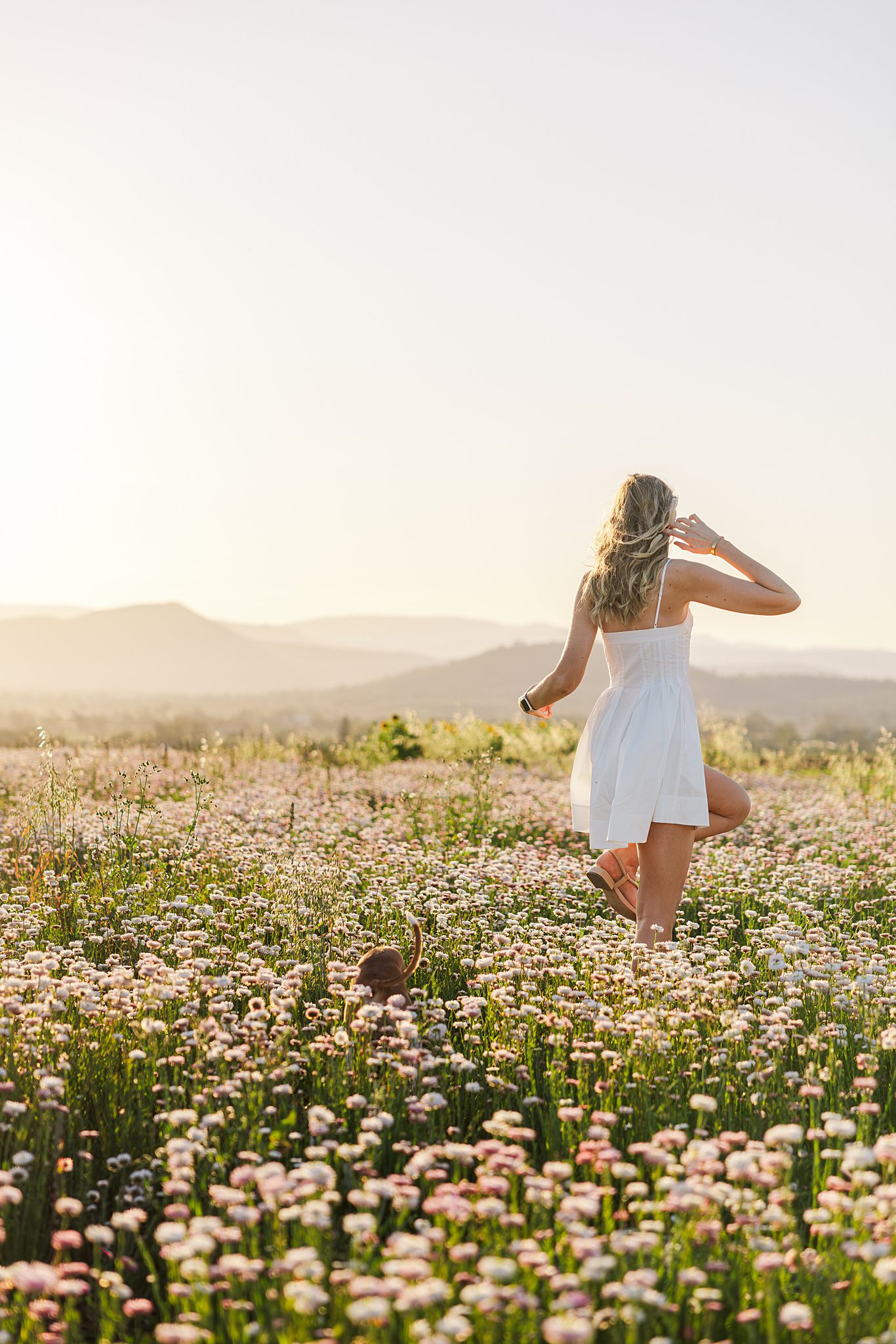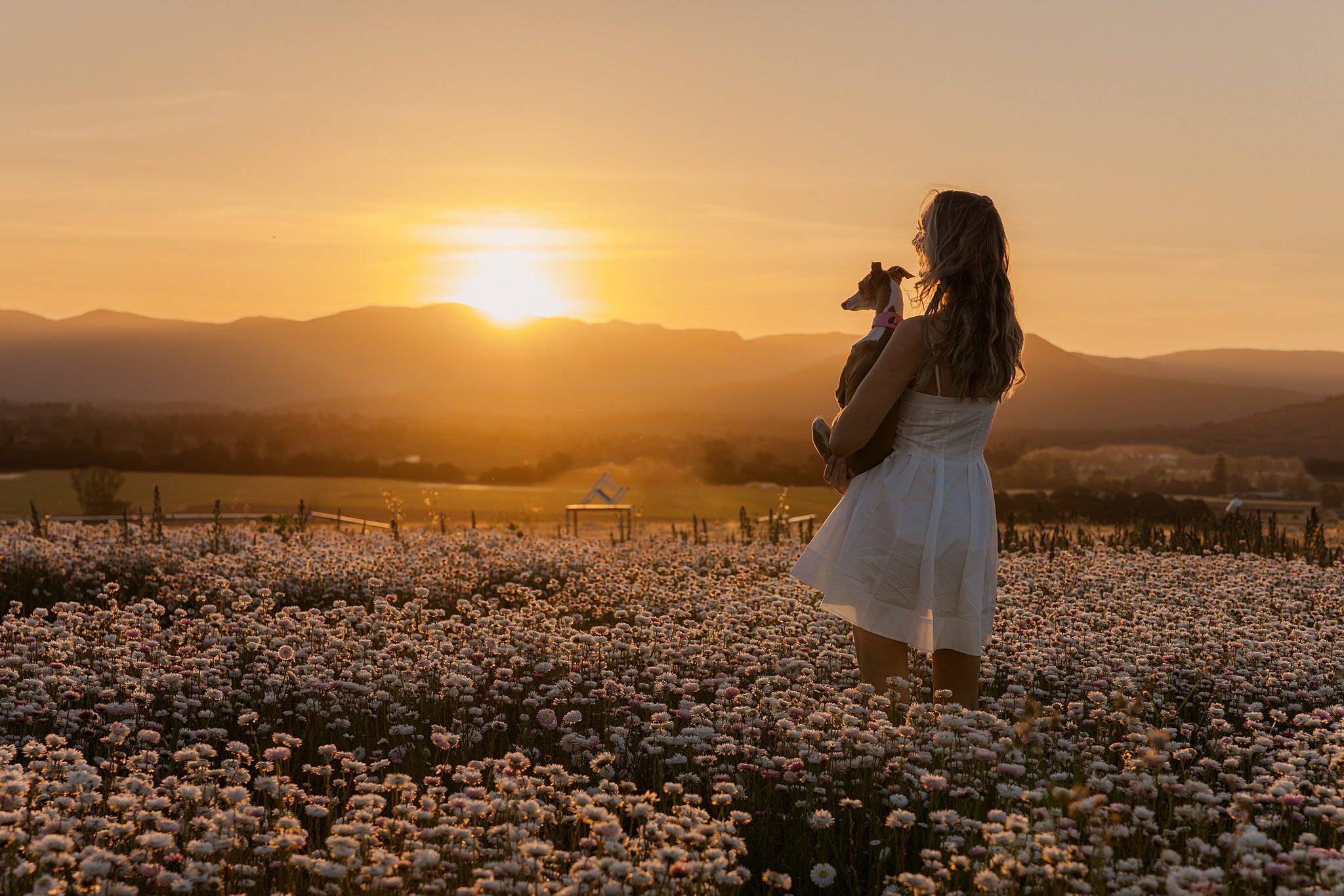 The Scenic Rim Flower Farm always makes the perfect backdrop — wide open skies, mountains on the horizon, and fields that shift with the seasons. In late spring, the daisies create this dreamy, ethereal landscape where every frame feels like a painting. Add in a beloved dog and her human, and it becomes something even more special — a reminder that family comes in all forms, and love always photographs beautifully.