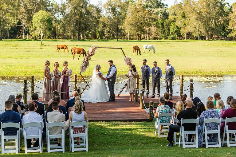 What a day we had celebrating with Michelle and Thomas! We were blown away by Michelle’s flawless look … or maybe it was her pregnancy glow?! She was just radiant. When we met up with Thomas we told him just how beautiful Michelle was and I swear he started to tear up! He is so caring towards Michelle. Extra sweetness to their relationship. They were married on the jetty over the lake with horses roaming in the background as extra witnesses to their vows! Thanks to opening international boarders some of their extended family were able to make the journey as well. The overall day had such a relaxed vibe and lots of misty eyes during speeches! These two are well loved and we are excited to see you become parents soon!!! To see their wedding photos CLICK HERE – Sharla Park Country Wedding.