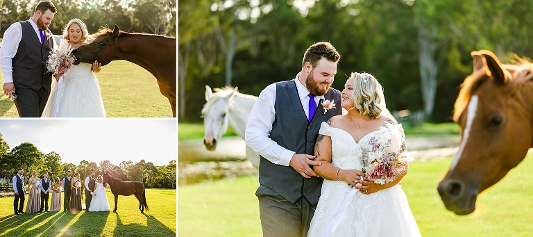 Sharla Park is so photogenic… we will run out of time before we do options for gorgeous settings to explore on your day. The jetty, pine trees, the rolling grassland, homestead, barn, white fences with dusty trails, silo bar, lake and bridge, natural bush land, and so many structured features that are custom built throughout the property! …oh and all the cheeky horses that LOVE to cuddle on this farm. I have never met so many affectionate horses.