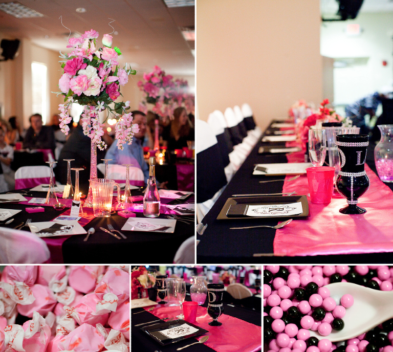 What did I tell ya… amazing pink and black details!!! Samantha, I think you could be a wedding planner. Mat Marrash shot the close up candy bar photos & the cake kiss. When I was walking around the reception hall it seemed everyone had a full plate of candy before dinner!!! hahahaha.