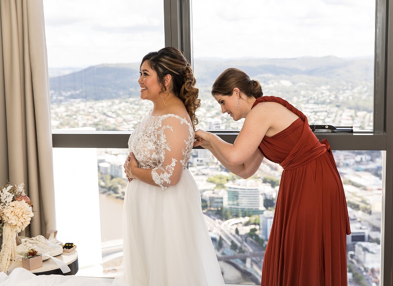 Nathan and I met through university where we were both studying regional and town planning (UQ – where we had our engagement photos shot!). Nathan was a 4th year and I was a 1st year. We originally met because my oldest friend Shalini’s (maid of honor) older sister Adrika was in the same cohort as Nathan and she recommended me to join the Organisation Of Planning Students (OOPS) of which Nathan was president. I first met Nathan at an OOPS Industry Night where being an first year wanting to help out and get involved Nathan joked “well as first years you and the other first years are the bumholes of the organisation and so you get to do the jobs I don’t want to do!” (Nathan denies he ever said this!). Nathan and I however didn’t start dating until my uni friend Meg (bridesmaid) pointed out how nice his butt was and if i could date him because she was already in a relationship! Our first date was a bit of us daring/testing each other and we both decided to meet in Southbank in our ‘onesies’ (I was pikachu and he was a dinosaur) and neither of us really thought we would show up in our onesies but we did and the rest is history!