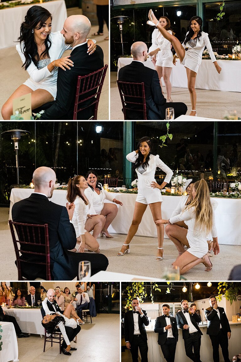 Liz + Mac had so many fun surprises and treats for their guests! Highlights were Mac doing his own version of a bouquet toss with a head of broccoli! …as well as the tippy top secret bride/bridesmaids choreographed dance just for Mac. The MC also had some fun with the wedding party by organising a scavenger hunt where they had to plumage through guest’s possessions. There were many heartfelt speeches and love shared between these two and the close relationships they share with family and friends. To see more wedding photos visit their GALLERY.