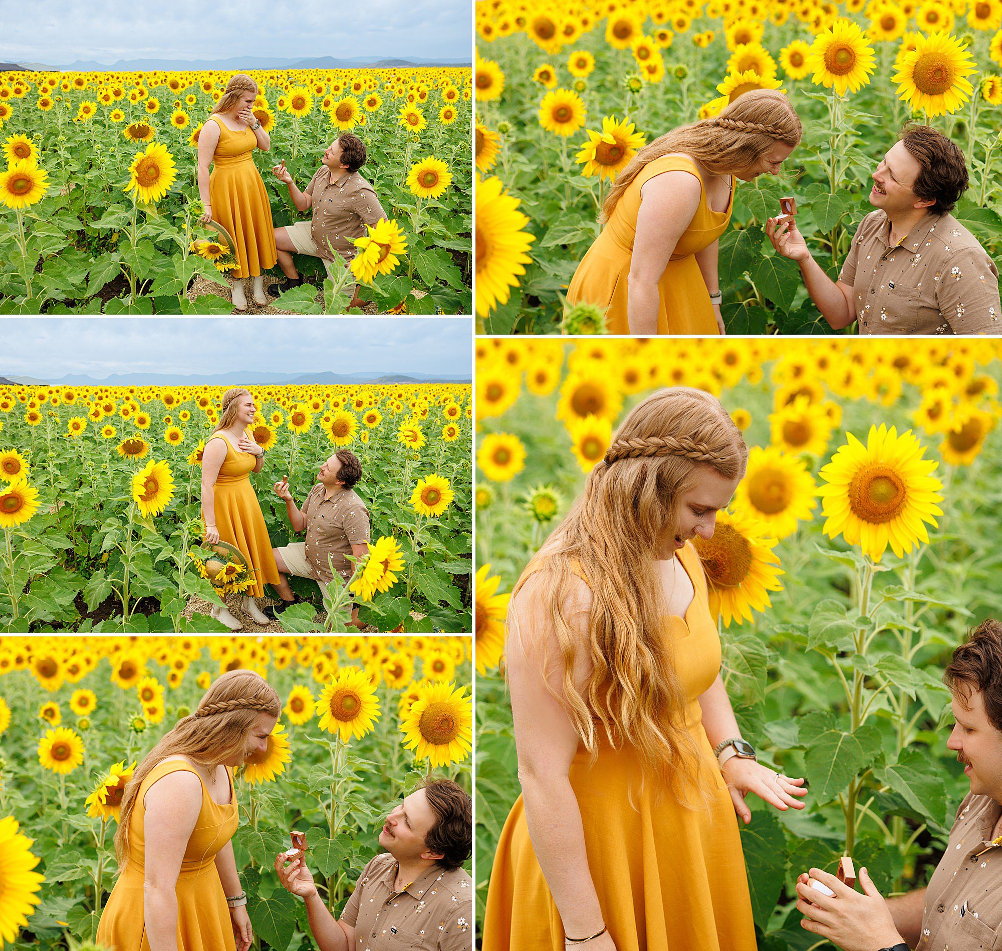 This was our fourth year at the Kalbar Sunflower Festival photographing families and our first year as an official photographer for the farm’s mini sessions. We met many families and friends in the field of sunflowers for mini sessions but the most surprising one of all was when Luke bent down on one knee and proposed during their photo session with us. Surrounded by a million sunflowers it was picture perfect and… she said yes!