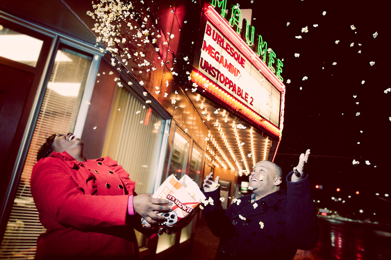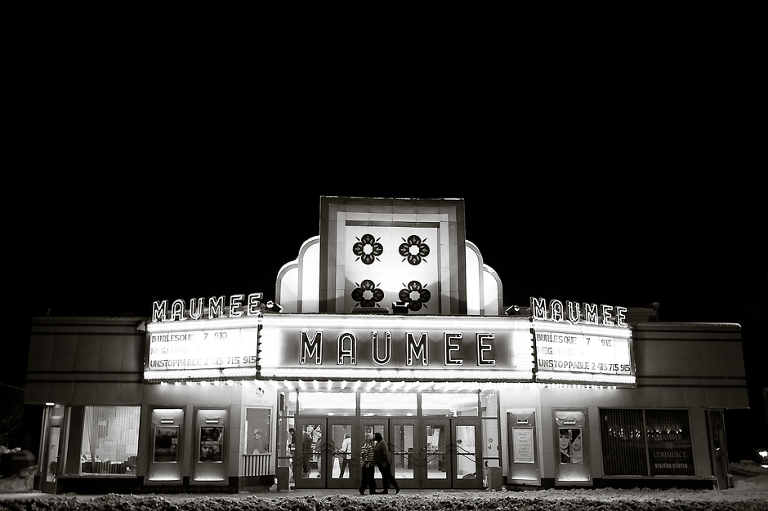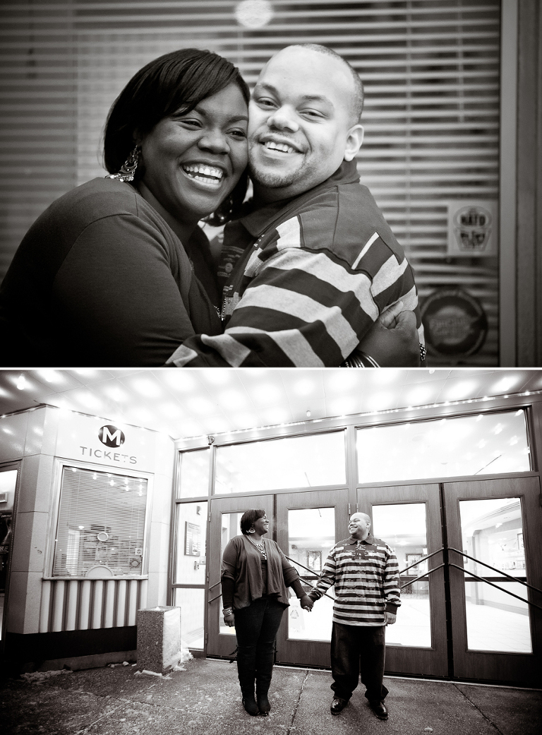 William and Adriana met me at the Maumee Theater on their monthly date night for a theater themed engagement session. Adriana’s laugh is infectious… every time she giggled so did William. Despite the cold (with no coats I might add) they both just enjoyed each other.